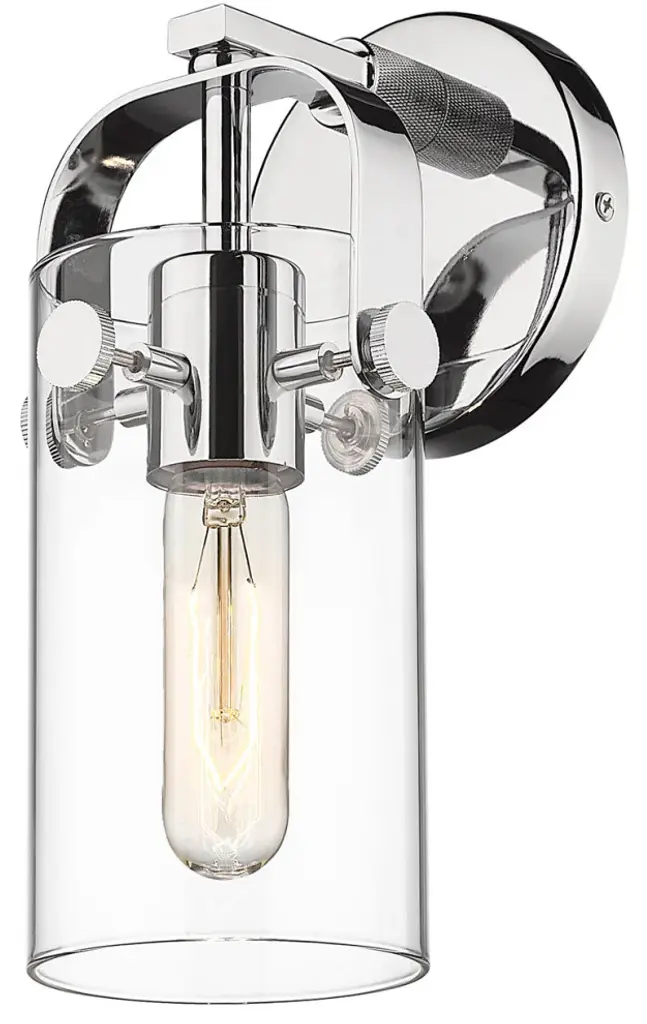 INNOVATIONS 423-1W-PN-G423-7SM Pilaster II Cylinder 1 4.5 inch Sconce Polished Nickel. Style: Contemporary, Farmhouse, Restoration-Vintage. Collection Name: Downtown Urban. Metal Finish(Body): Polished Nickel. Material: Steel, Cast Brass, Glass. Dimension(in): 10.5(H) x 4.5(W) x 5.5(Ext). Bulb: (1)6W LED(Included). Voltage: 120. Dimmable: Yes. Color Temperature (Kelvin): 2700. Color Rendering Index (CRI): 90. Lumens: 750. Life Expectancy (Hours): 15000. Glass Shade Description: Light Smoke Pilaster II Cylinder. Glass Type: Smoked. Shade Shape: Cylinder. Glass or Metal Shade Color: Light Smoke. Shade Material: Glass. Shade Dimension(in): 3.875(W) x 7(H). ADA Compliant: No. California Proposition 65 Warning Required: Yes. UL/ETL Certification Type: Damp Location.