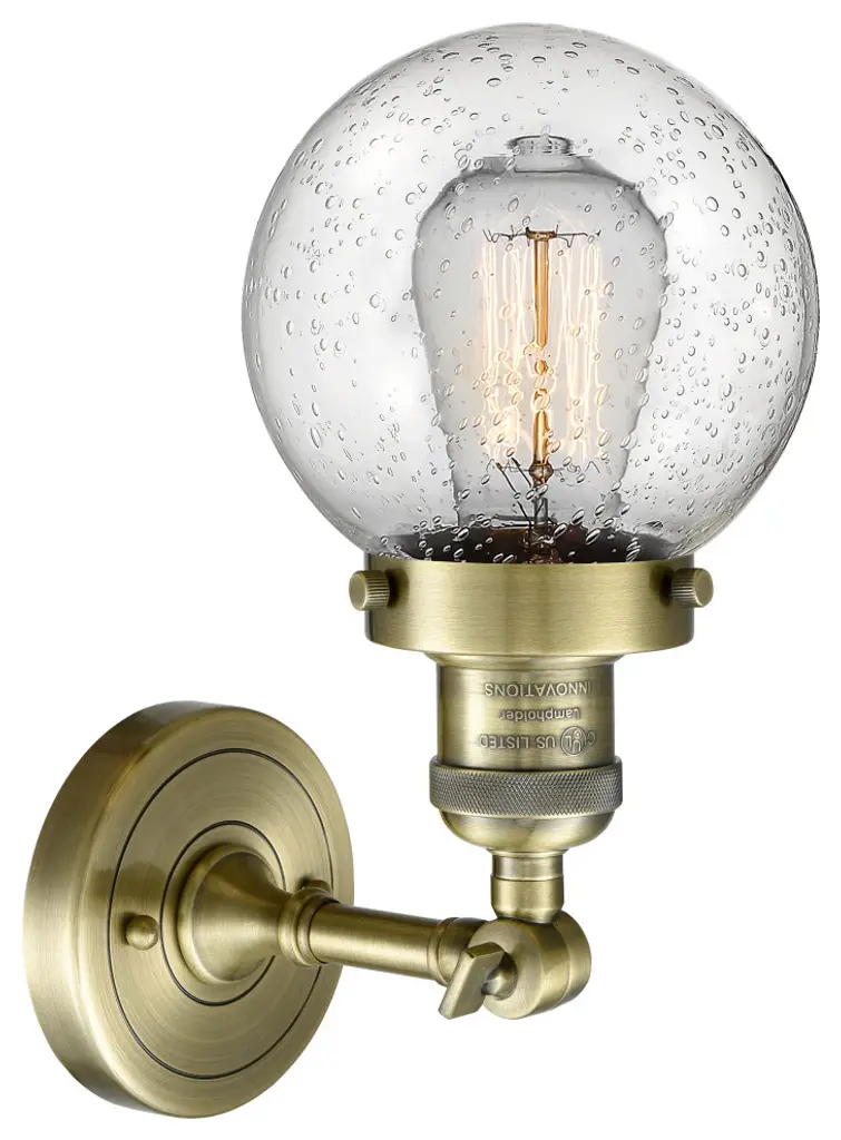 1-Light Beacon 6" Sconce, Antique Brass, Glass: Seedy