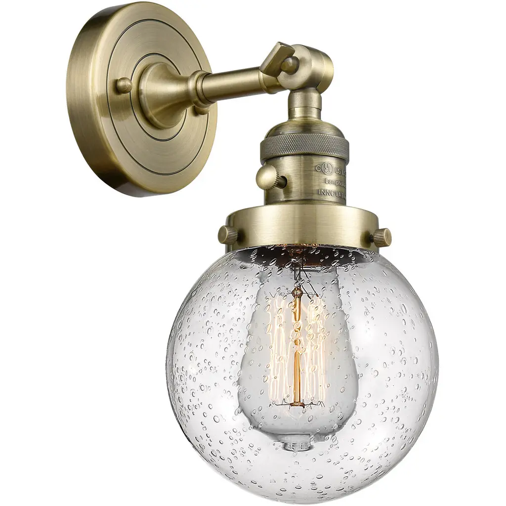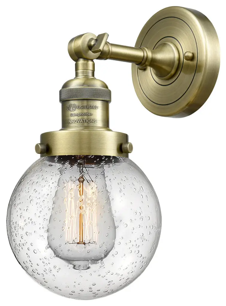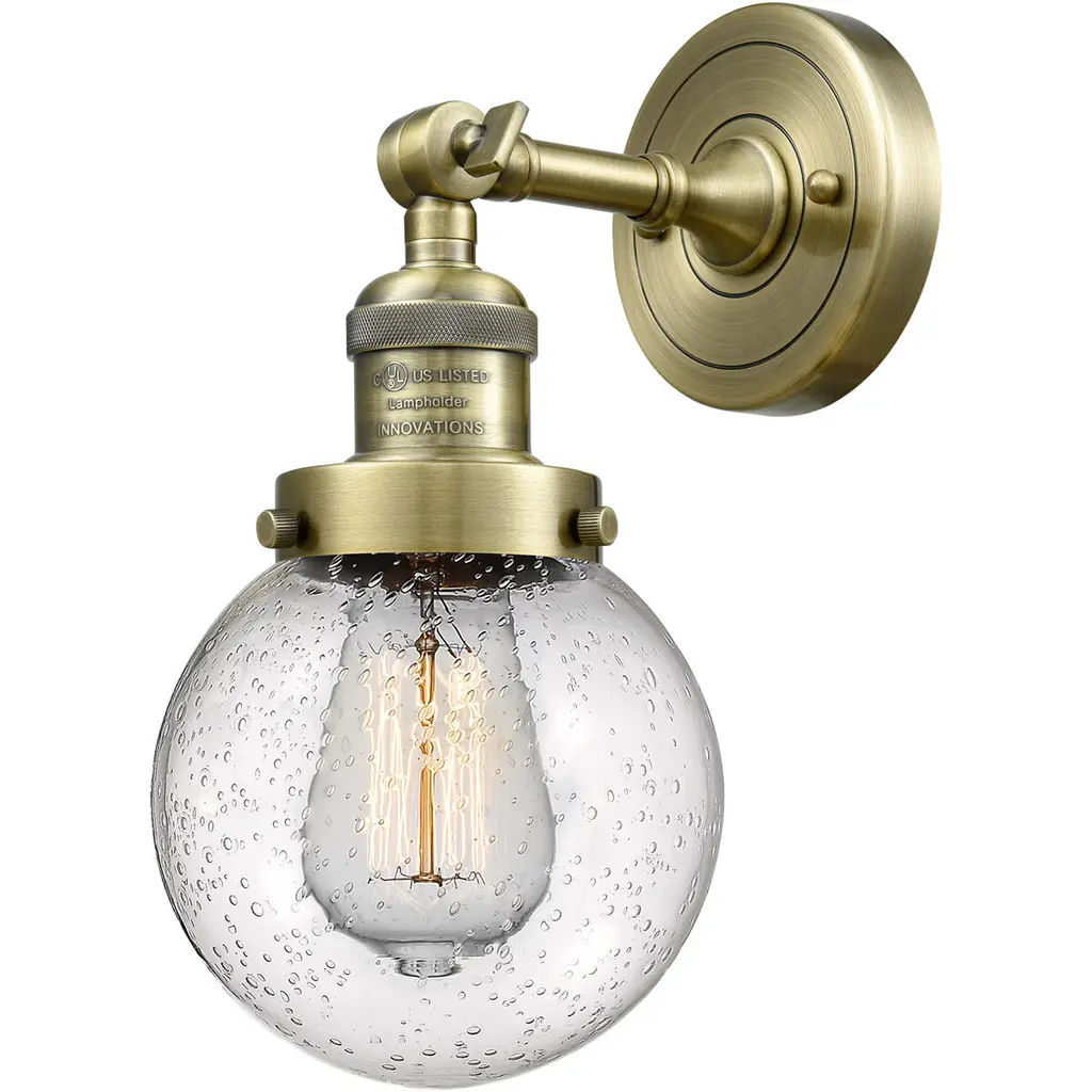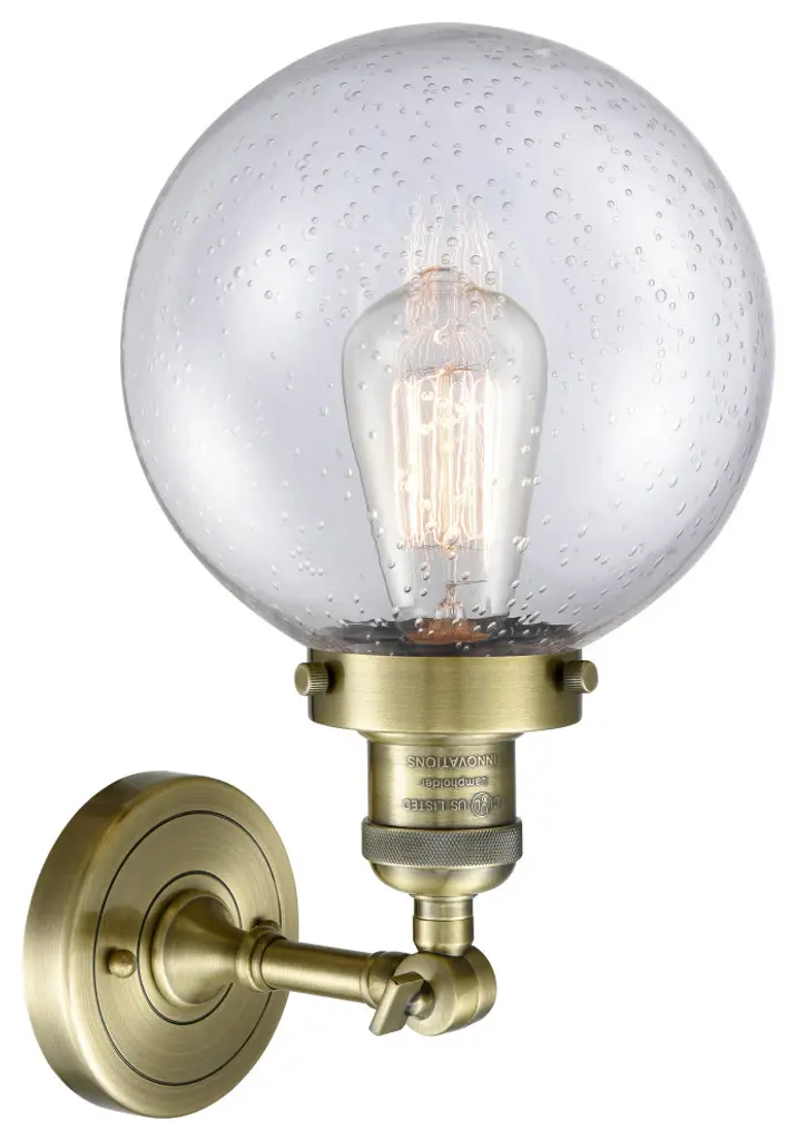 1-Light Beacon 8" Sconce, Antique Brass, Glass: Seedy