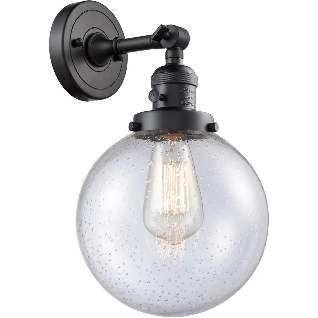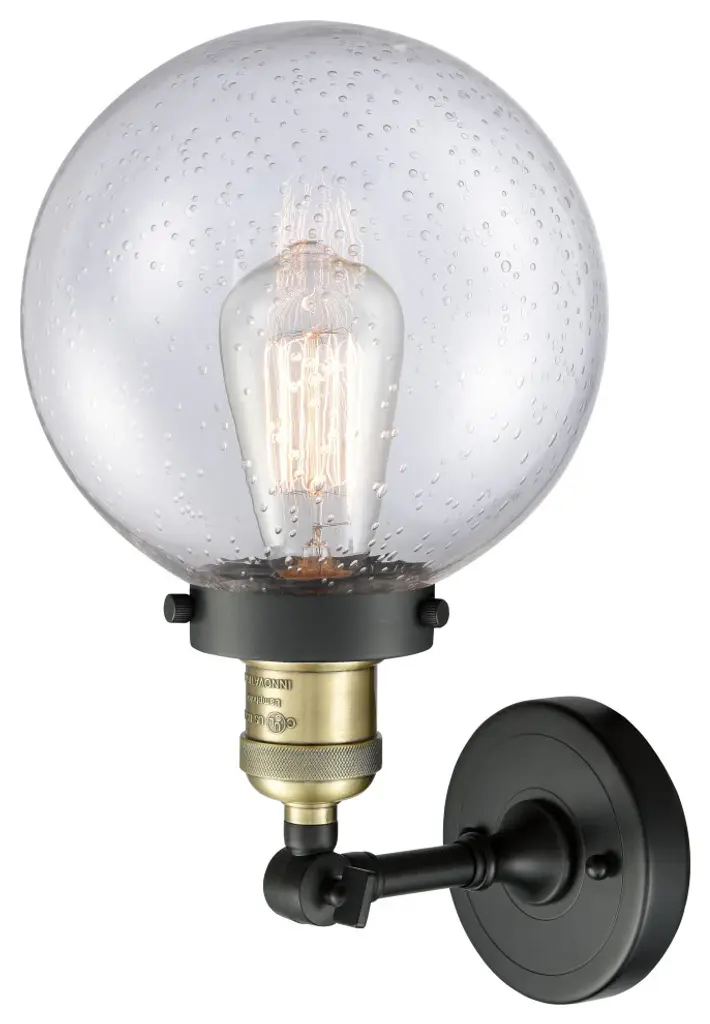 1-Light Beacon 8" Sconce, Black Antique Brass, Glass: Seedy
