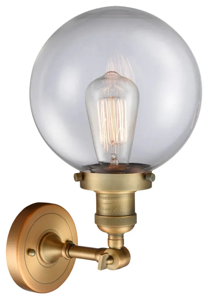 1-Light Beacon 8" Sconce, Brushed Brass, Glass: Clear