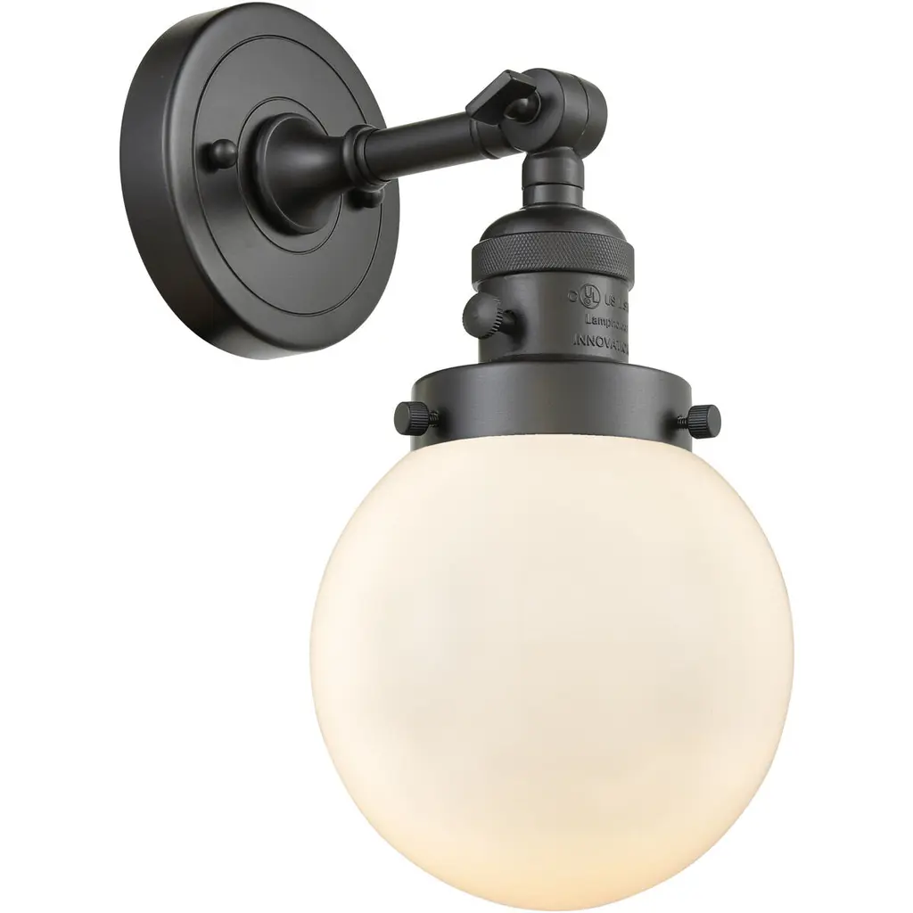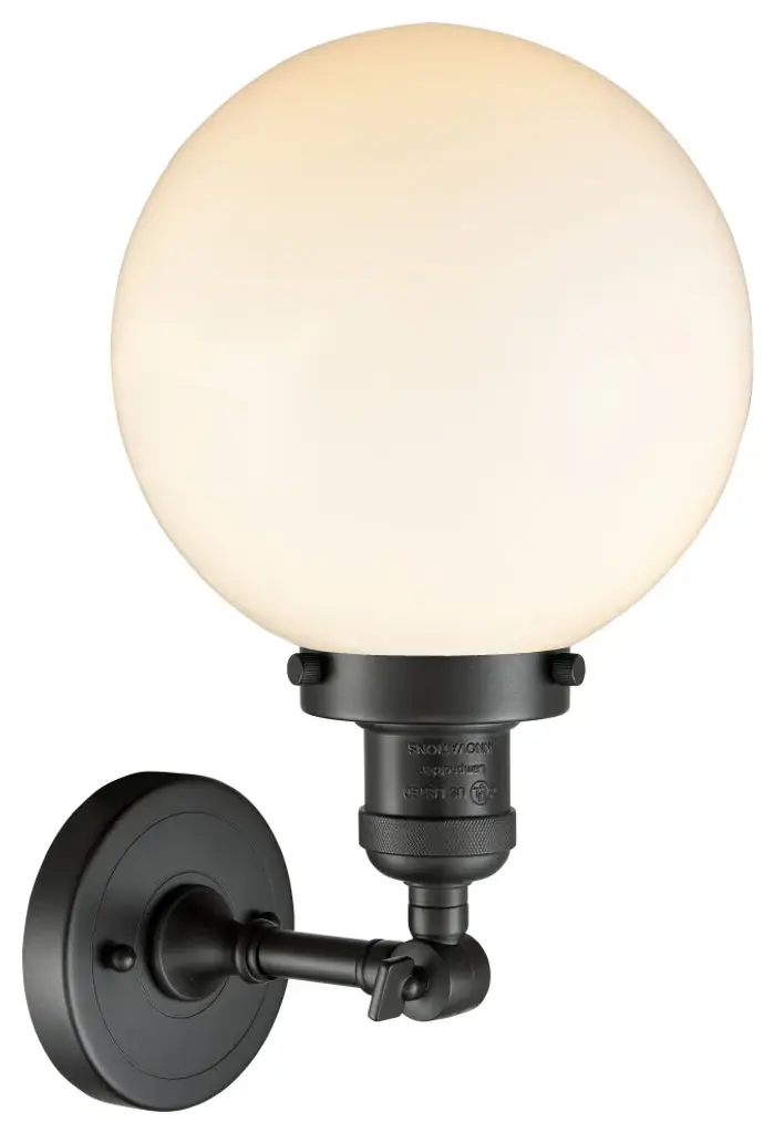 1-Light Beacon 8" Sconce, Oil Rubbed Bronze, Glass: Matte White Cased