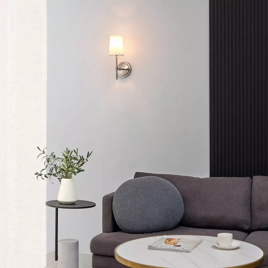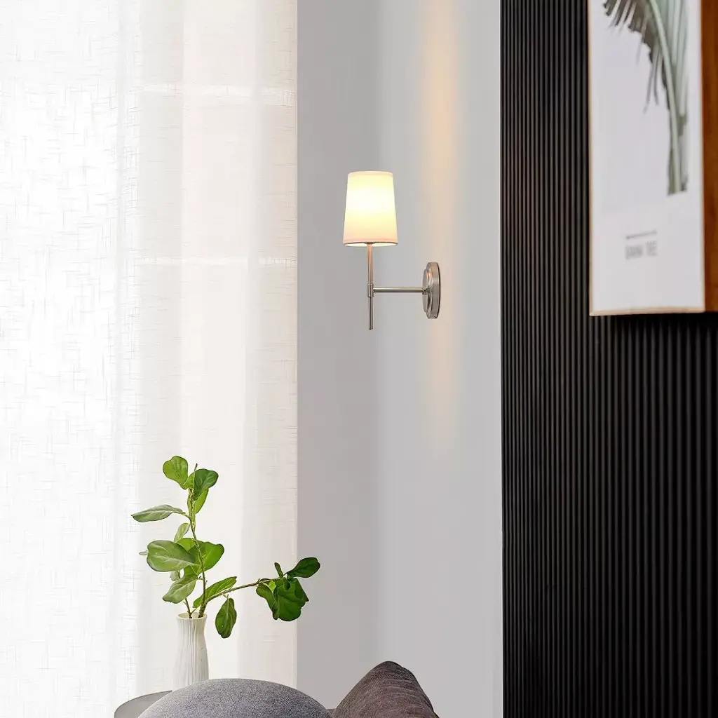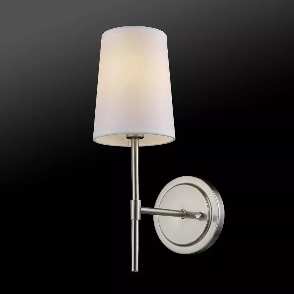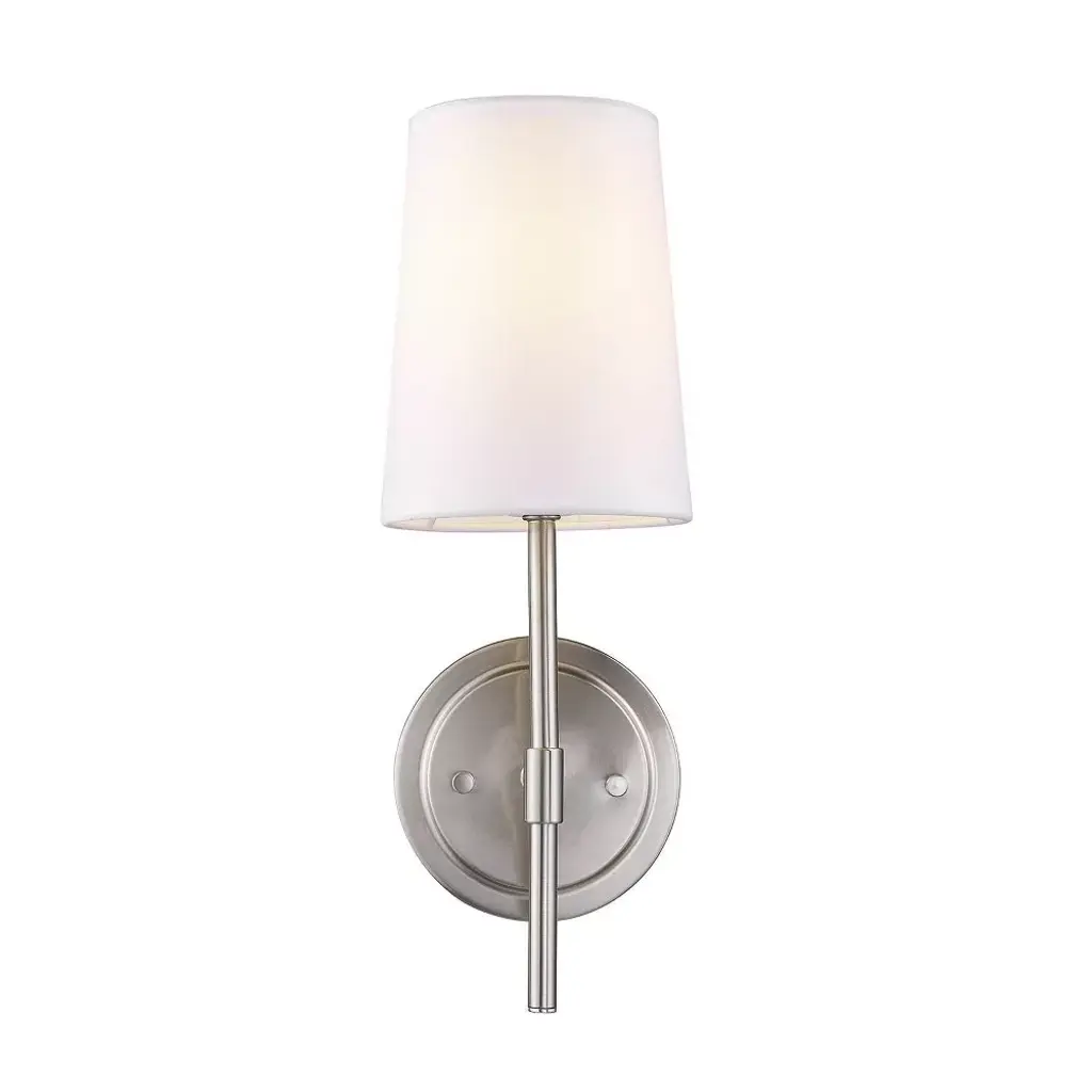 The modern design of Globe Electric's Clarissa Wall Sconce stands out in any home. The vintage lantern shape adds style to any space while the white fabric shade softly distributes light. A brushed nickel finish completes the modern glam motif. Perfect for placing on either side of your bed, above your sink in the kitchen, or above your couch in the living room as a stunning statement piece.