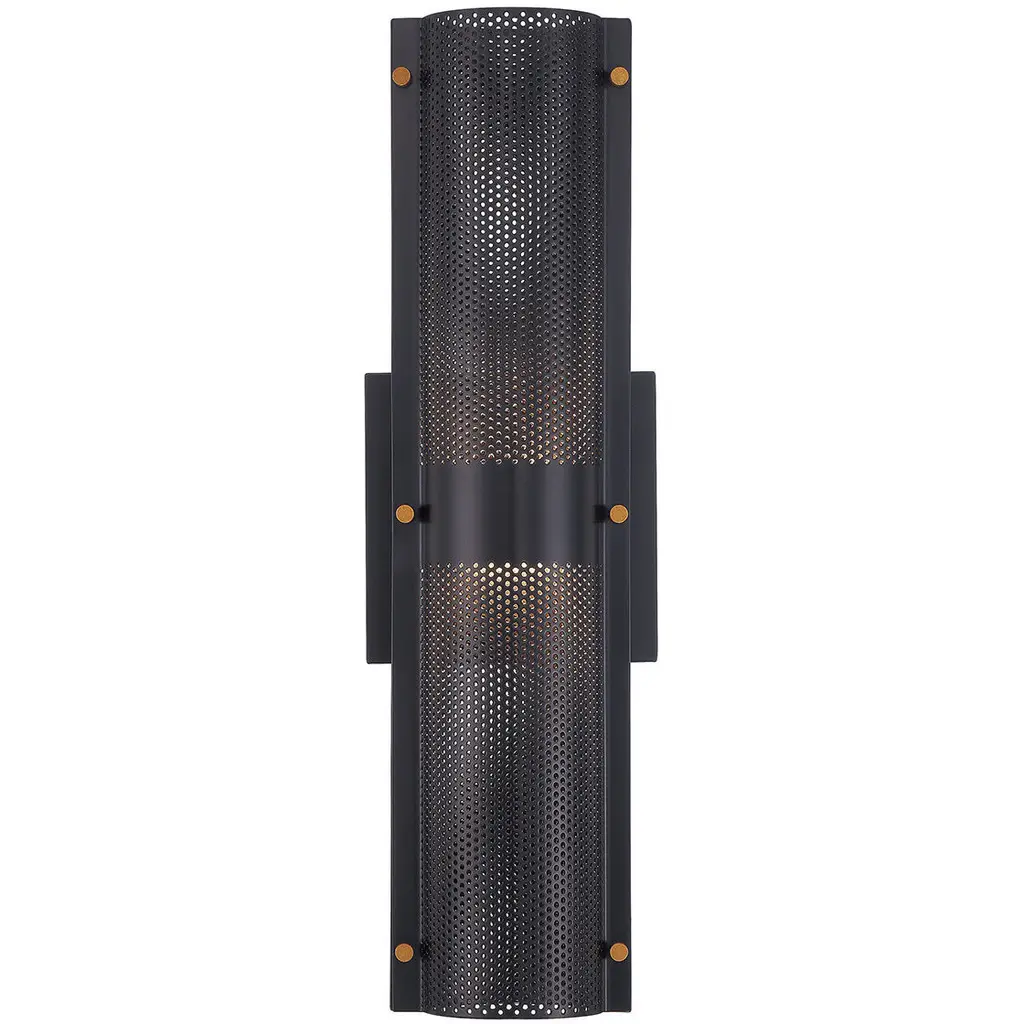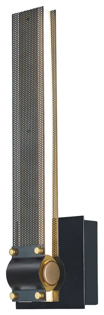 The Admiral LED Wall Sconce offers an elegant 16-inch integrated LED light mounted in an intricate metal frame, combining modern design with functionality. Its sleek black and gold-black finish, along with the filigreed metalwork, creates a unique way to diffuse light, perfect for both contemporary and chic spaces.Number of Lights: 1Bulb Type: Integrated LEDWattage: 16WLED Color Temperature (K): 3000KDimmable: YesBulb Included: YesVoltage: 120VLighting Location: DampCertification: CETLUSMounting Type: J-BoxDimensions: 16.25" x 5" x 5"Weight: 3.75 lbs
