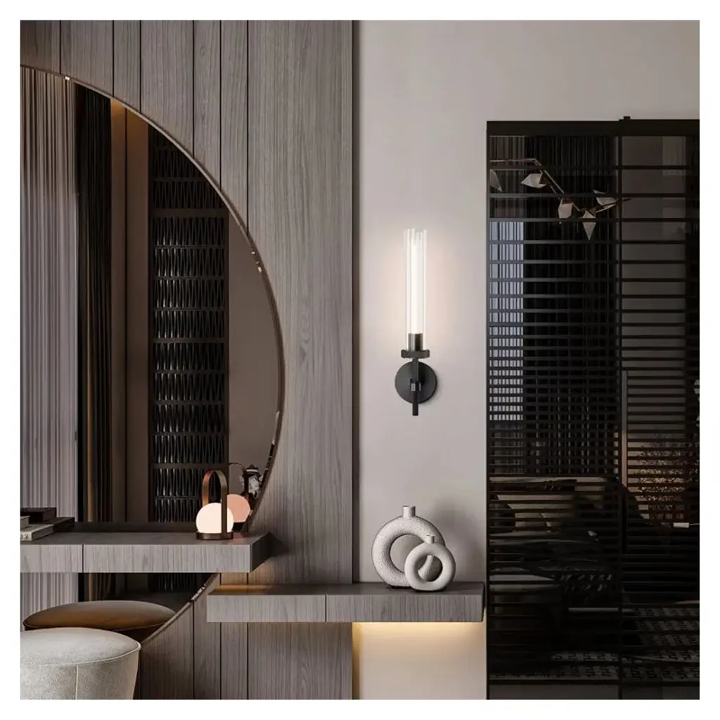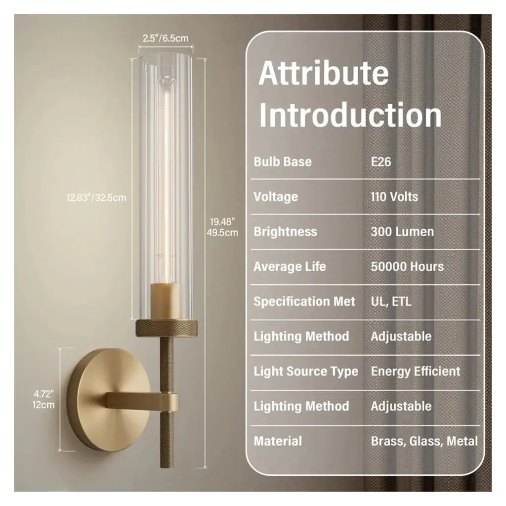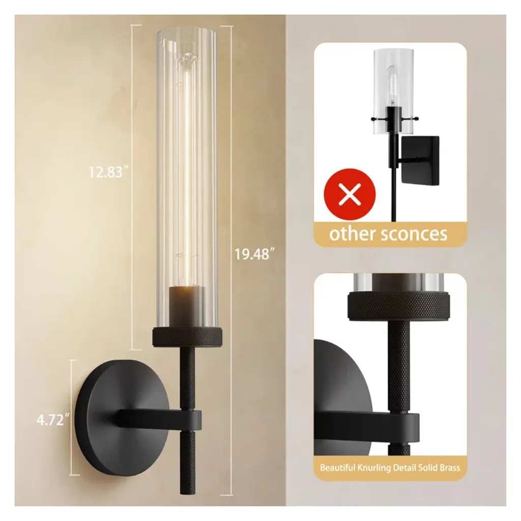This wall light has a modern and industrial design style, elegant and beautiful. This wall mount light is made of high-quality materials, does not easily rust and fade, and has strong corrosion resistance. The thick clear glass shade is used, which is not easy to break and has strong light transmittance, softening lighting care of eyes health, illuminating various spaces in your house. This wall sconce has a modern and industrial design style, elegant and beautiful. The bathroom sconce comes with one bulb, and this bathroom vanity lighting is made of high-quality materials(pure copper and glass), does not easily rust and fade, and has strong corrosion resistance. It adds a touch of opulence to your space, with its sleek and elegant matte black and brass color. The light fixture can be installed in both up and down directions.