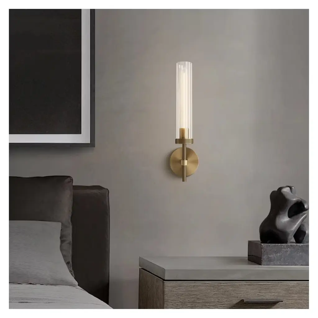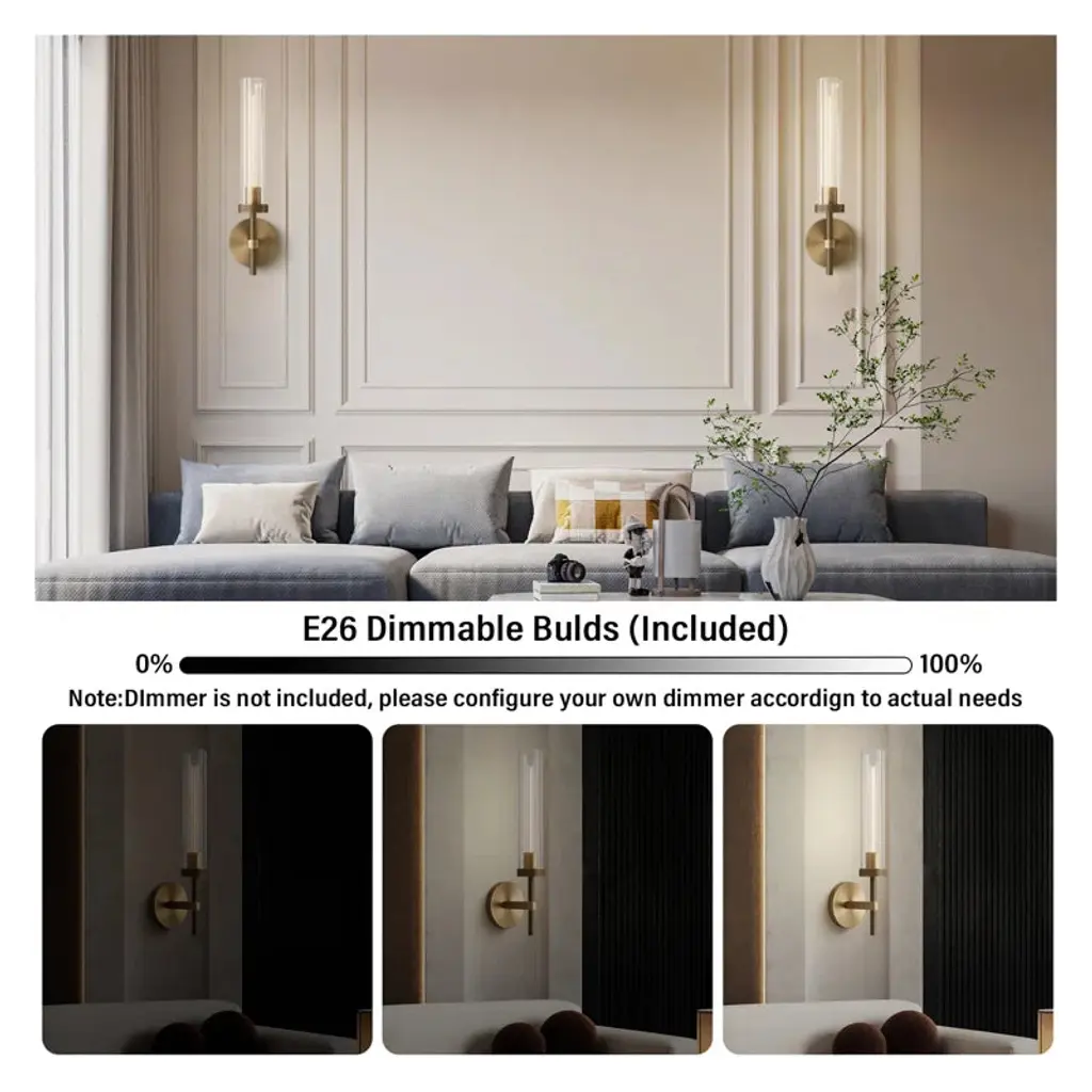 1- Light Dimmable Luxury Flush Mounted Sconces Wall Sconces Brass