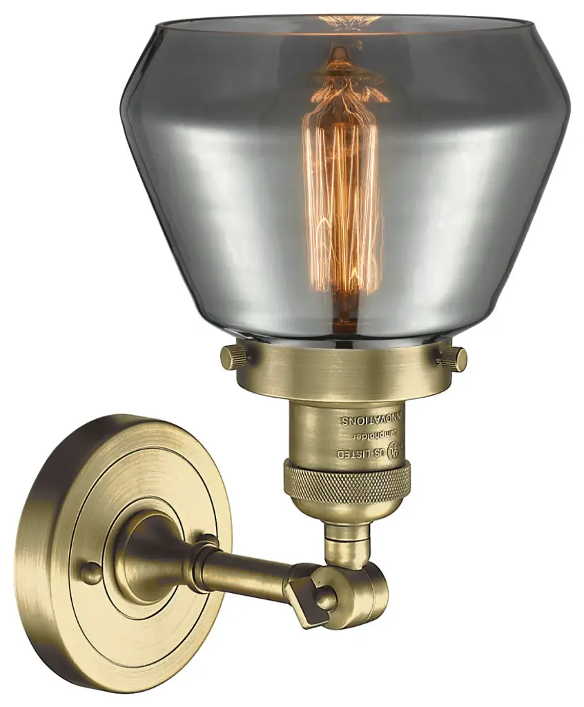 1-Light Fulton 7" Sconce, Antique Brass, Glass: Plated Smoked