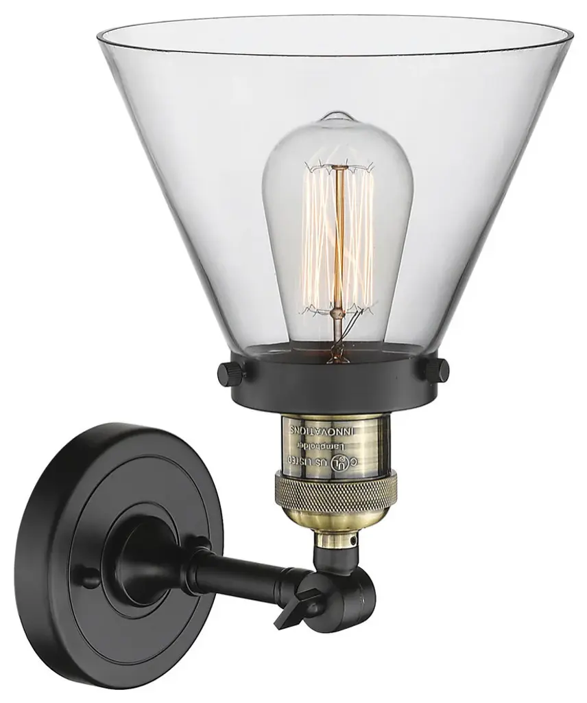 1-Light Large Cone 8" Sconce, Black Antique Brass, Glass: Clear