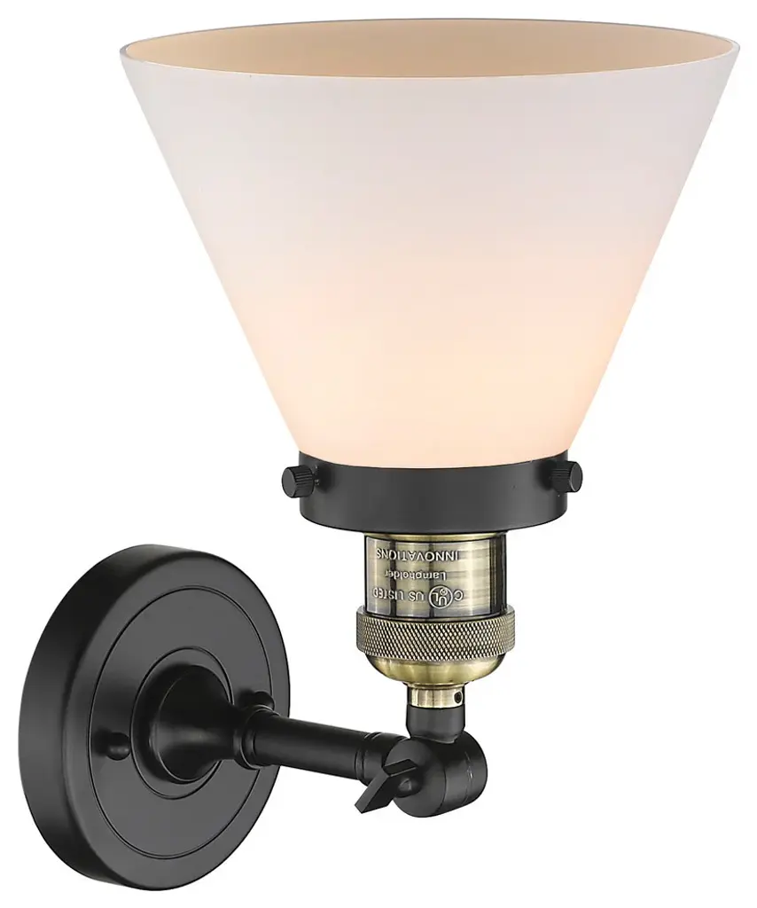 1-Light Large Cone 8" Sconce, Black Antique Brass, Glass: Matte White Cased