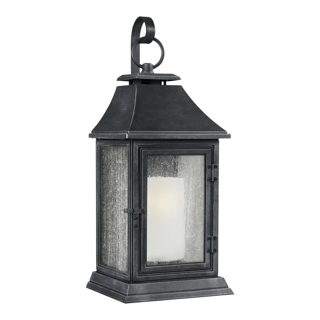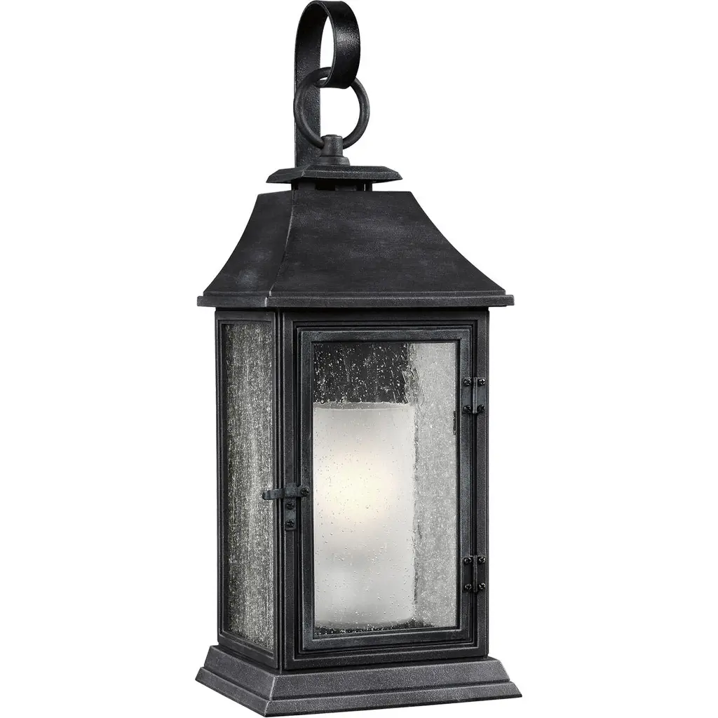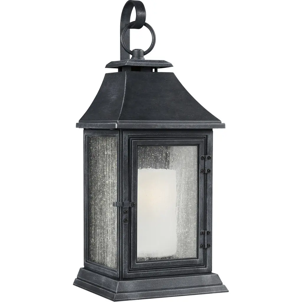 The Shepherd Outdoor Wall Sconce by Visual Comfort Studio, formerly known as Sean Lavin, features their proprietary StoneStrong material, designed for exceptional durability within harsh outdoor conditions. They take this material and some inspiration from the street lanterns of old Paris in a shepherds hook and hinged and latching door and the result is this standout fixture. Sure to bring style and that old lantern feel to your outdoor space. Dimmable with a standard incandescent dimmer (not included).