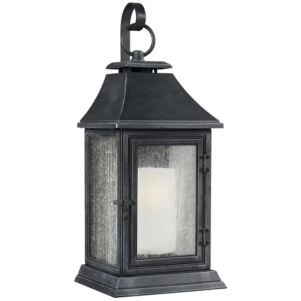 The Shepherd Narrow Outdoor Wall Sconce by Visual Comfort Studio, formerly known as Sean Lavin, was inspired by traditionally-styled street lanterns of Paris and will deliver this ambiance to your outdoor space. Design details abound with shepherd’s crook and hinged and latched door. Proprietary StoneStrong material is designed to withstand harsh environments and ensures durability while backed with a 5-year warranty. Dimmable with a standard incandescent dimmer (not included).