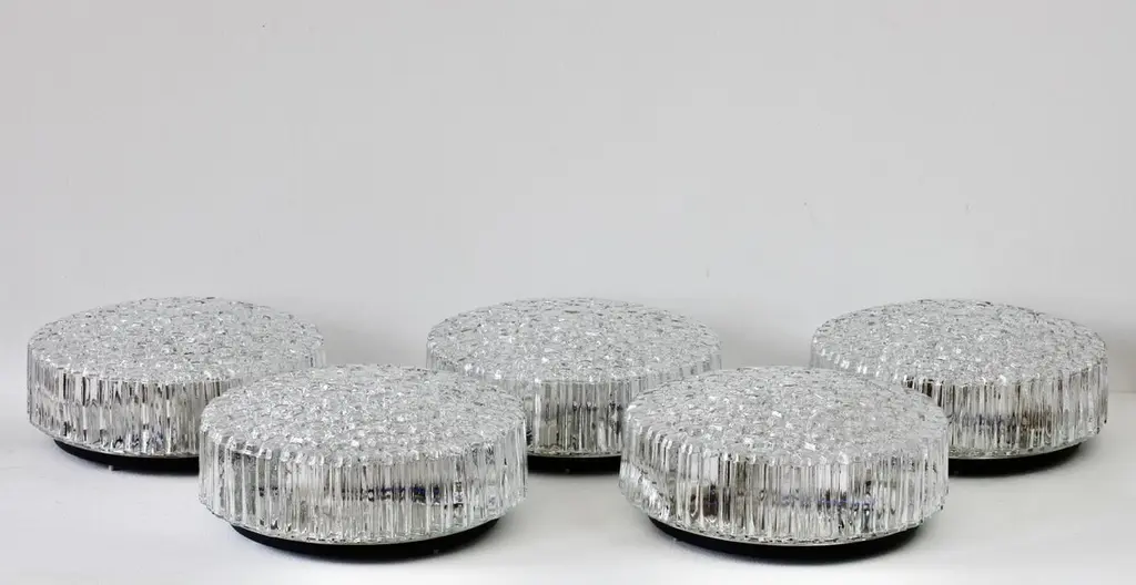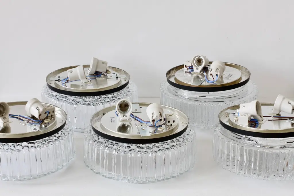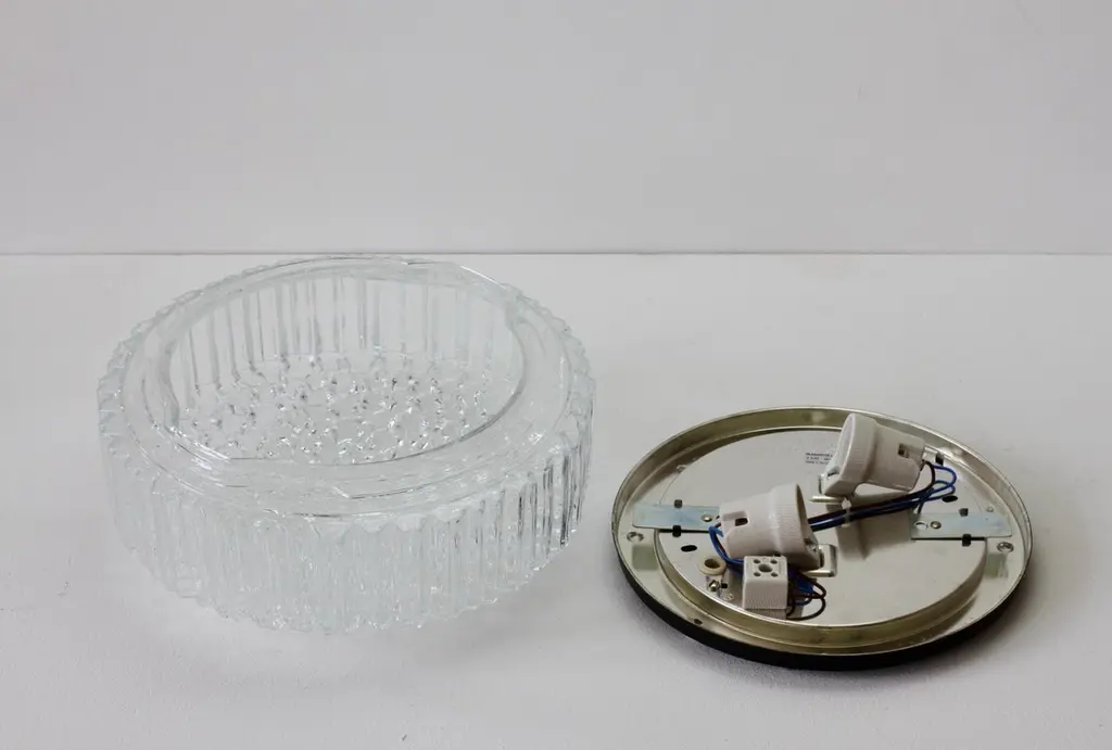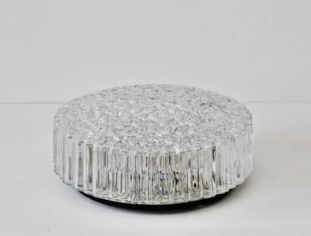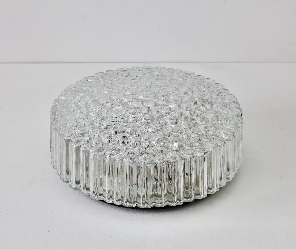 1 Of 2 Limburg Vintage 1970s Textured Clear Ice Crystal Glass Flush Mount Lights