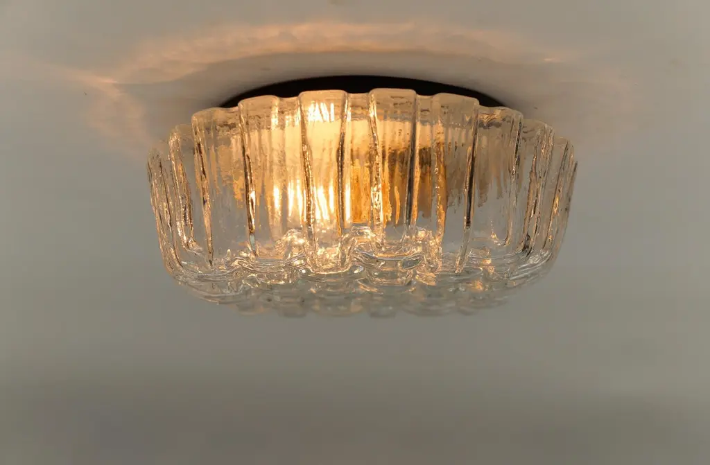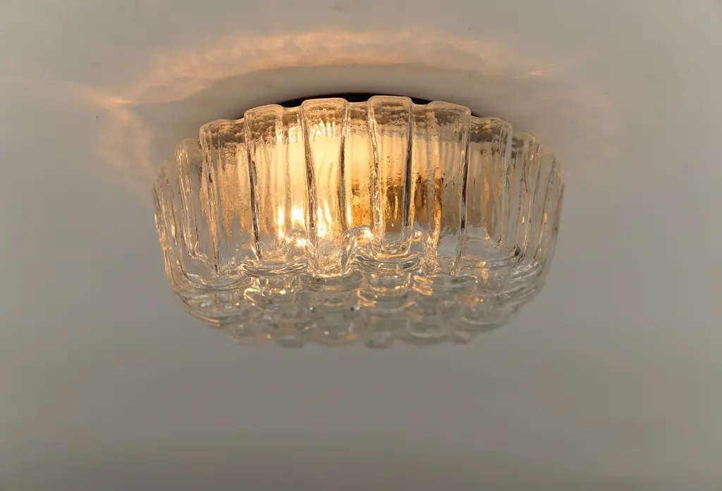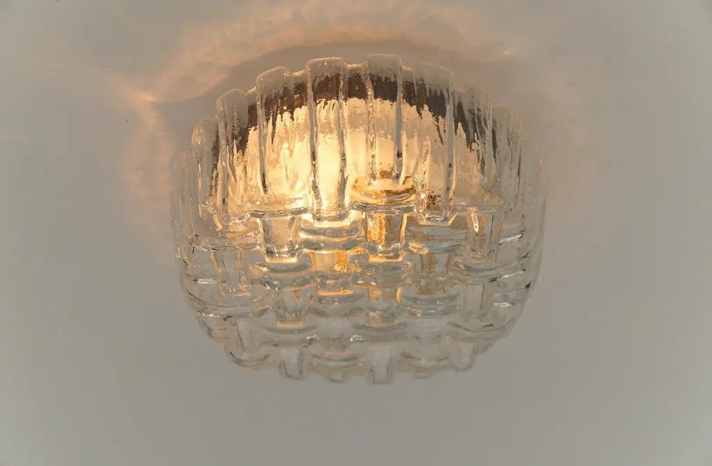 1. of 2 Round Woven Glass Flush Mount Light or Wall Lamp, Germany 1960sThis lamp need 1 x E27 Edison screw fit bulb is wired, in working condition and runs both on 110 / 230 volt. Dimmable.Light bulbs are not included.It is possible to install this fixture in all countries (US, Australia, Asia, UK, Europe,..).