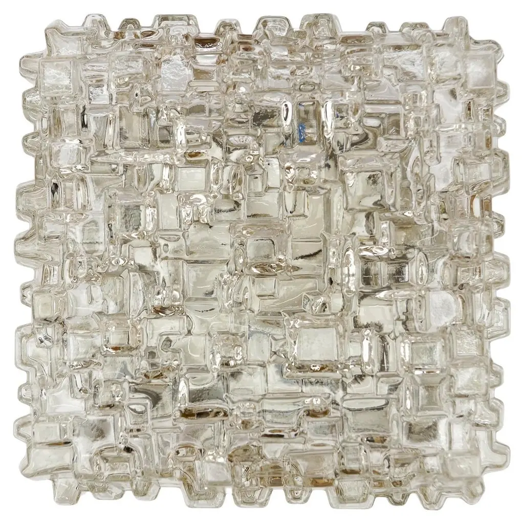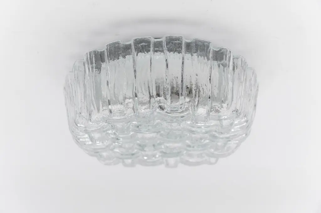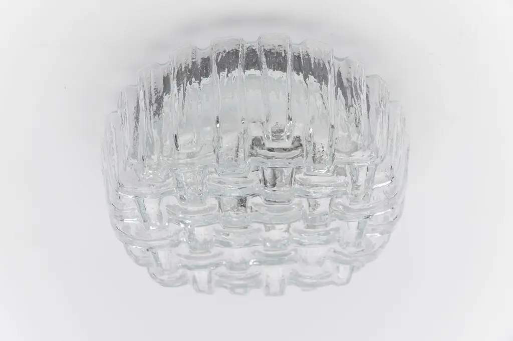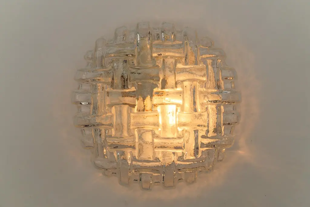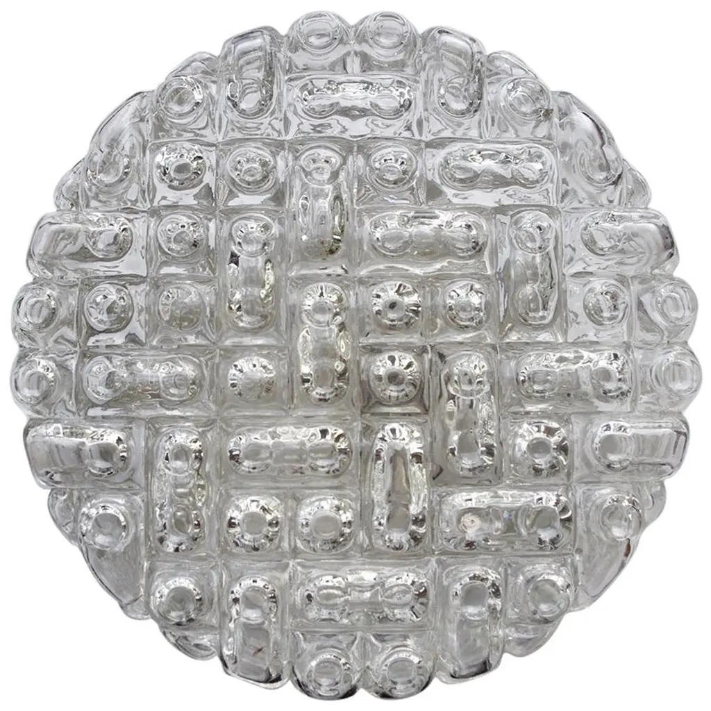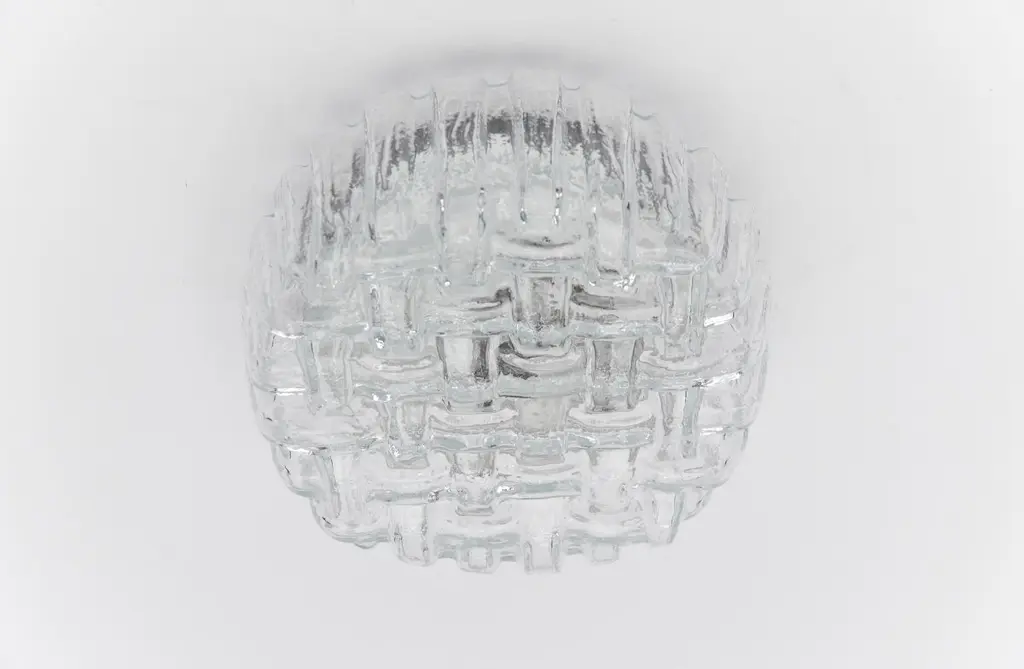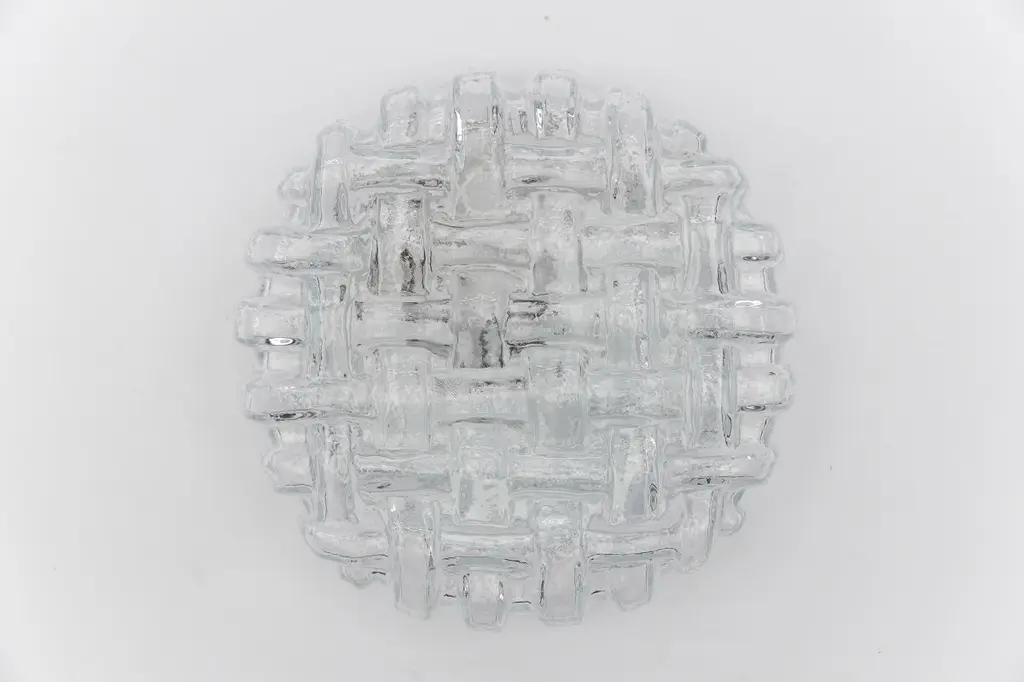 1. Of 2 Round Woven Glass Flush Mount Light Or Wall Lamp, Germany 1960s