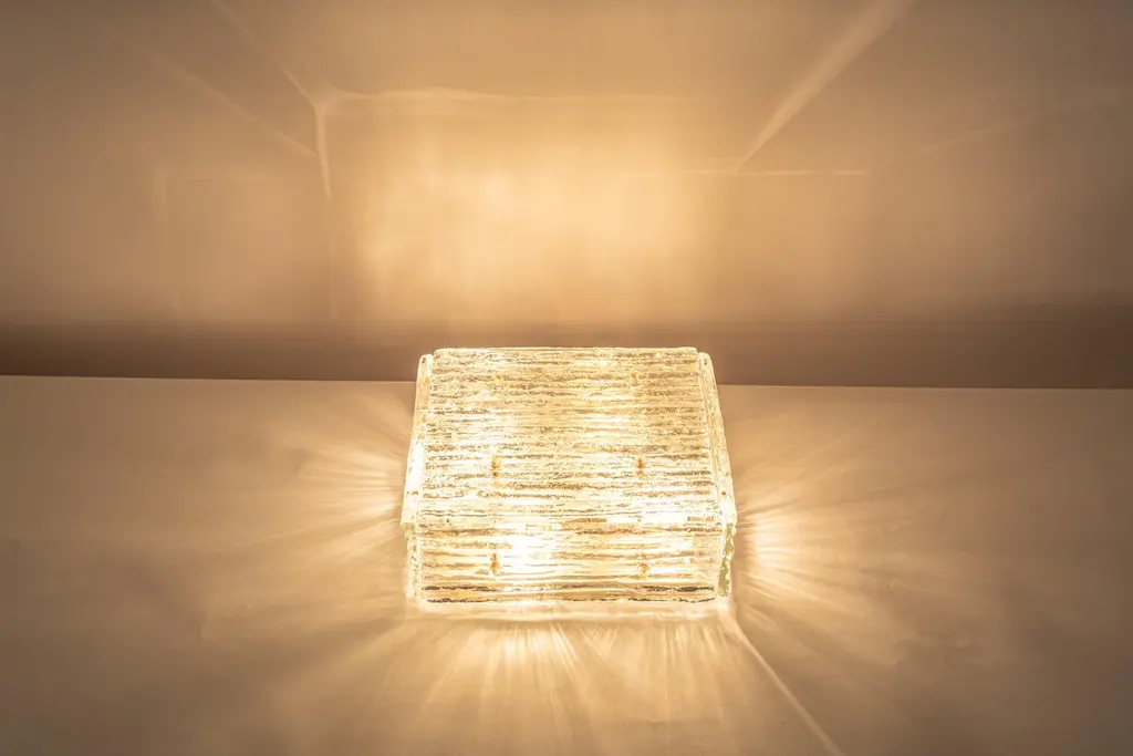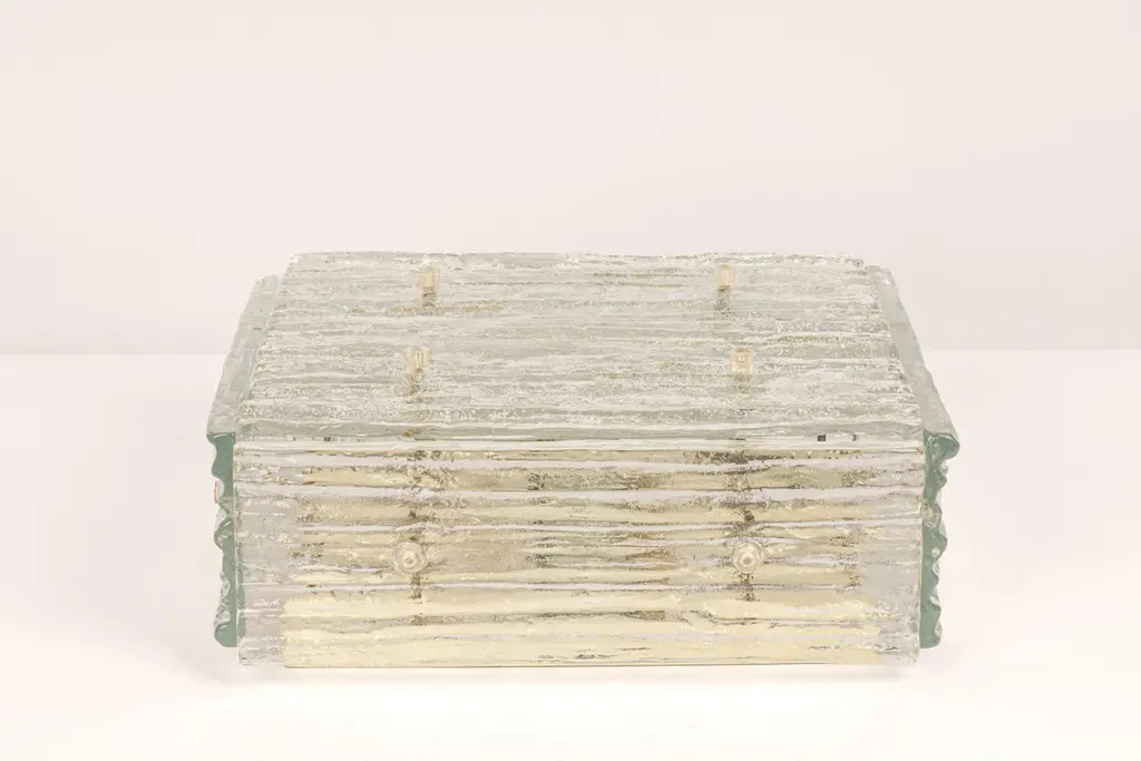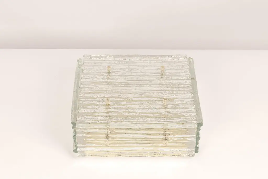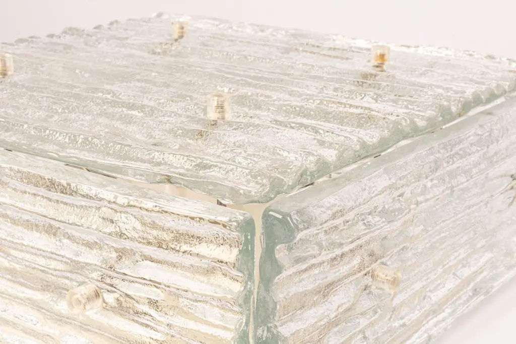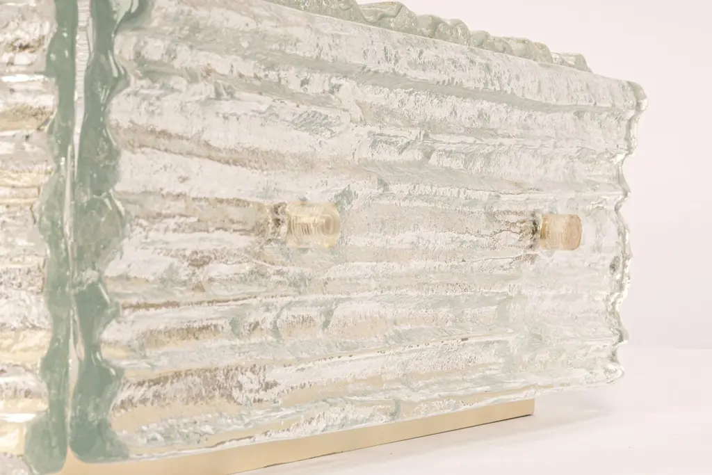 A stunning flush mount or wall light by Kalmar, Austria, manufactured in the 1960s.The flush mount is composed of 5 thick textured Murano glass elements attached to a white frame.Heavy quality and in very good condition.Cleaned, well-wired, and ready to use. Each fixture requires 4x E14 small bulbs with 40W max eachLight bulbs are not included. It is possible to install this fixture in all countries (US, UK, Europe, Asia, Australia,..)The listed price is for one item.