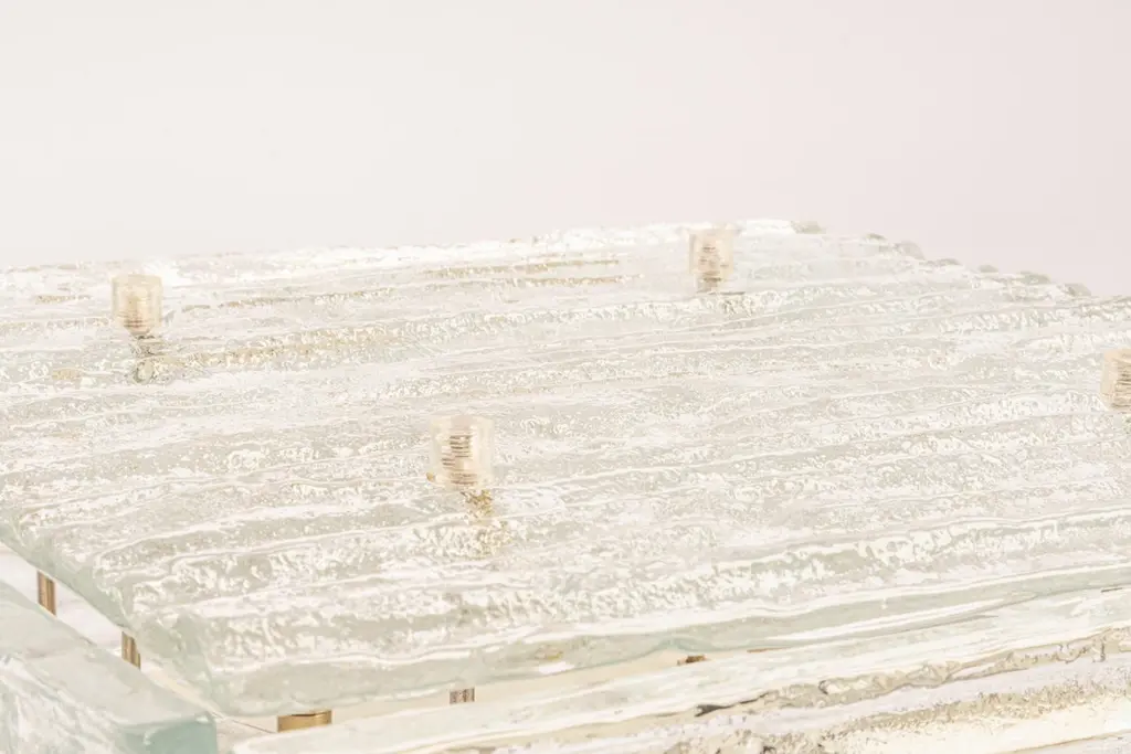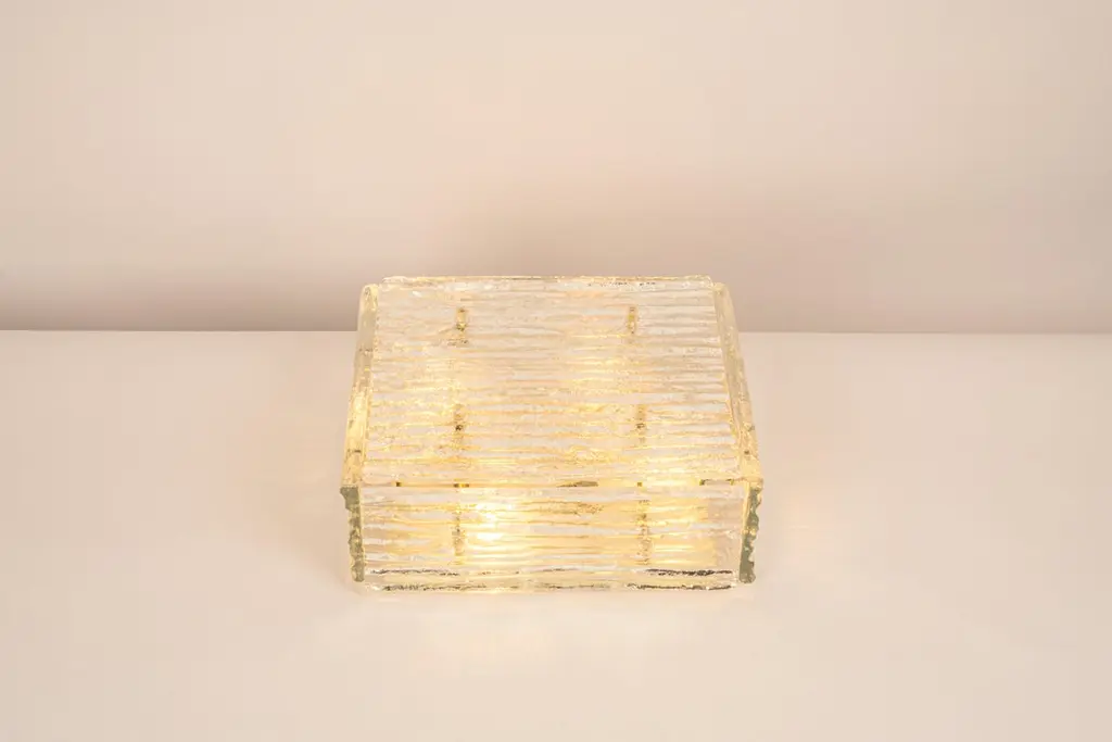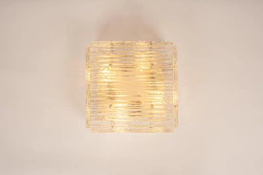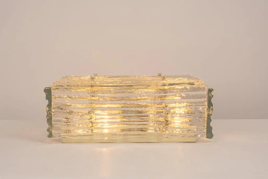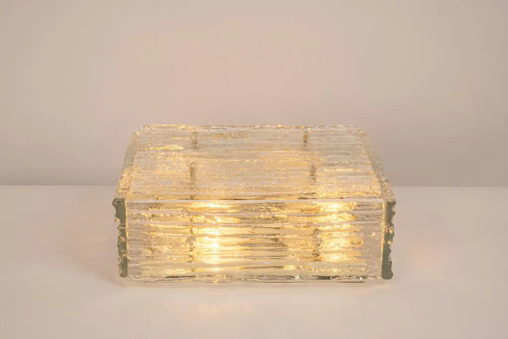 A stunning flush mount or wall light by Kalmar, Austria, manufactured in the 1960s.The flush mount is composed of 5 thick textured Murano glass elements attached to a white frame.Heavy quality and in very good condition.Cleaned, well-wired, and ready to use. Each fixture requires 4x E14 small bulbs with 40W max eachLight bulbs are not included. It is possible to install this fixture in all countries (US, UK, Europe, Asia, Australia,..)The listed price is for one item.