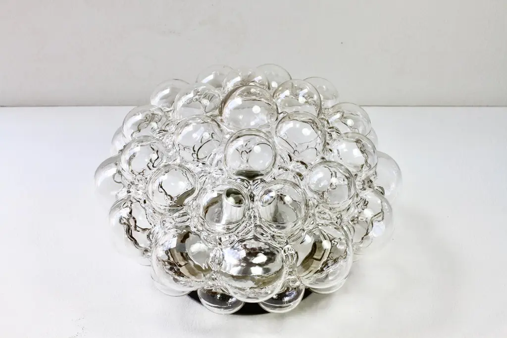 1 Of 3 Limburg Large Vintage Helena Tynell Smoked Bubble Glass Flushmount Lights