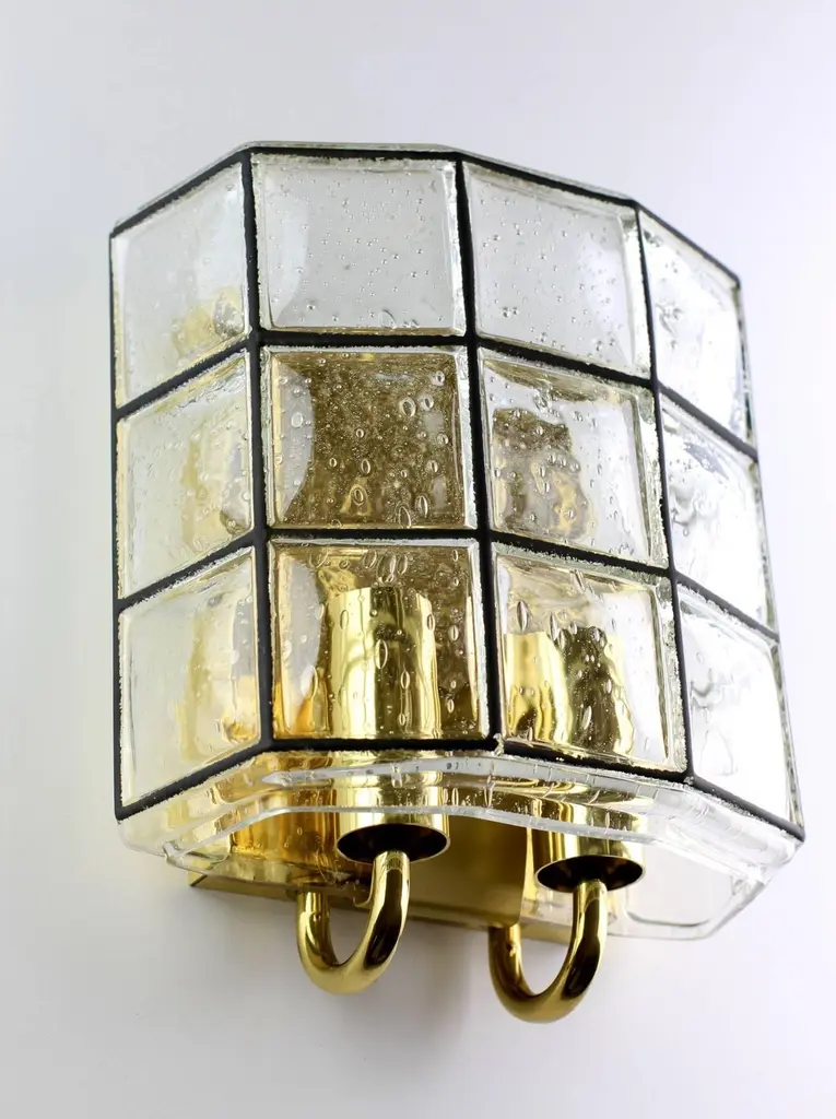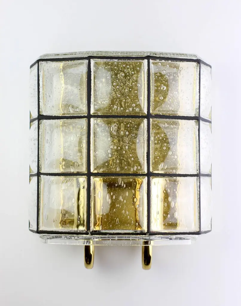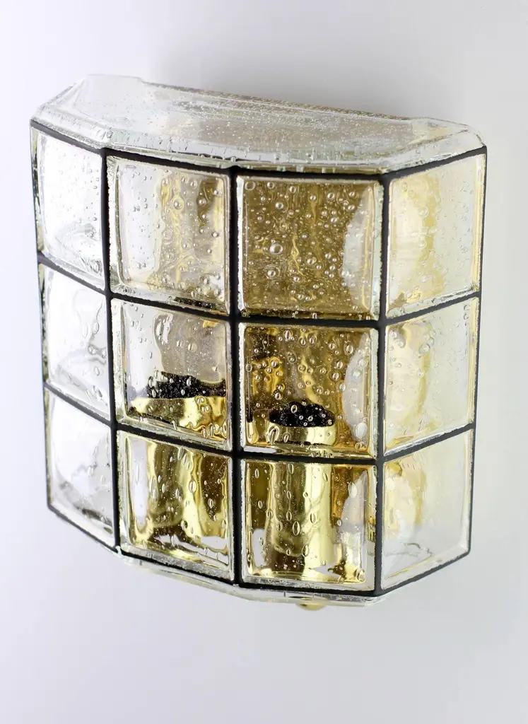 1 Of 4 Large Midcentury Iron And Bubble Glass Wall Lights By Glashütte Limburg
