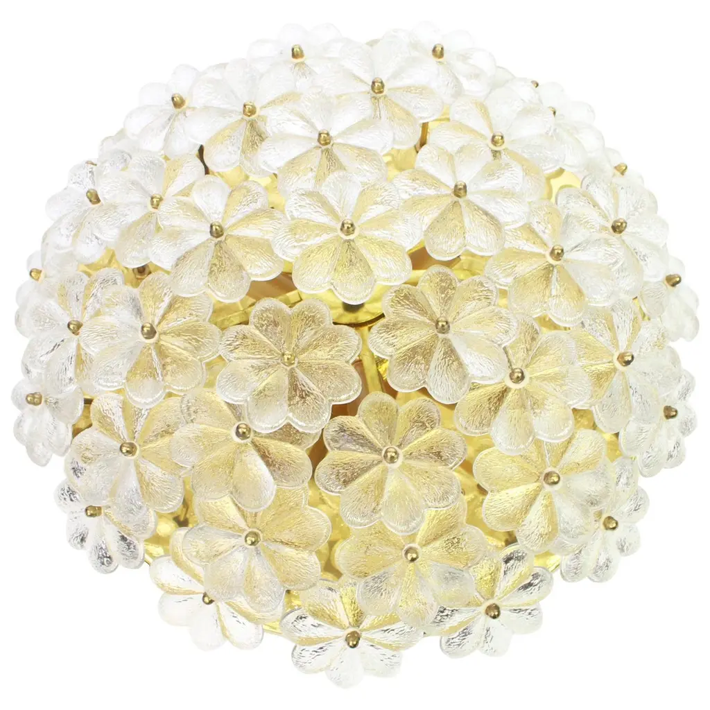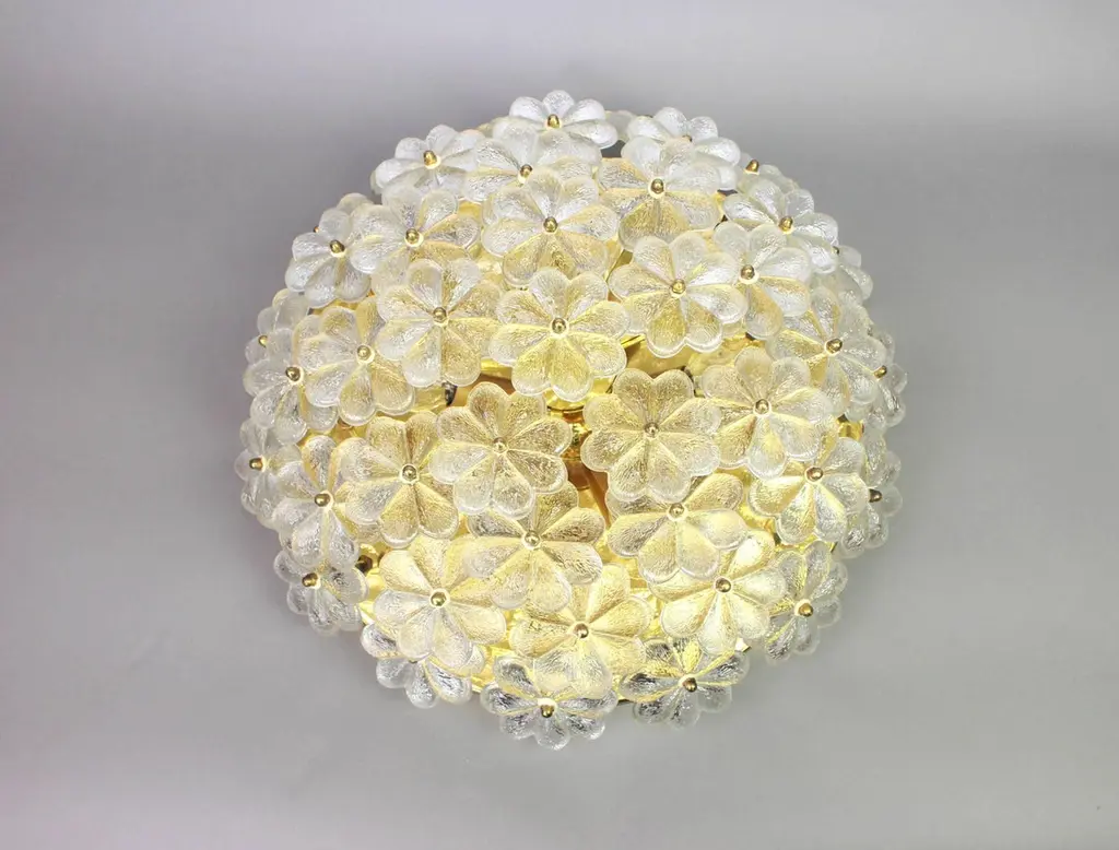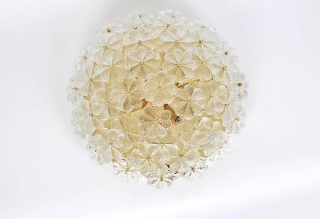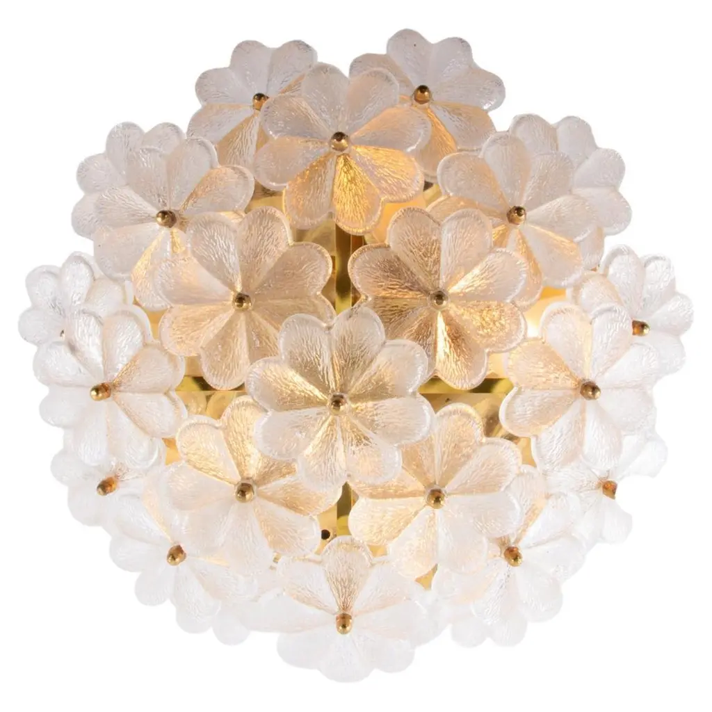 1 Of 4 Large Murano Glass Flower Flushmount, Ernst Palme, Germany, 1970s