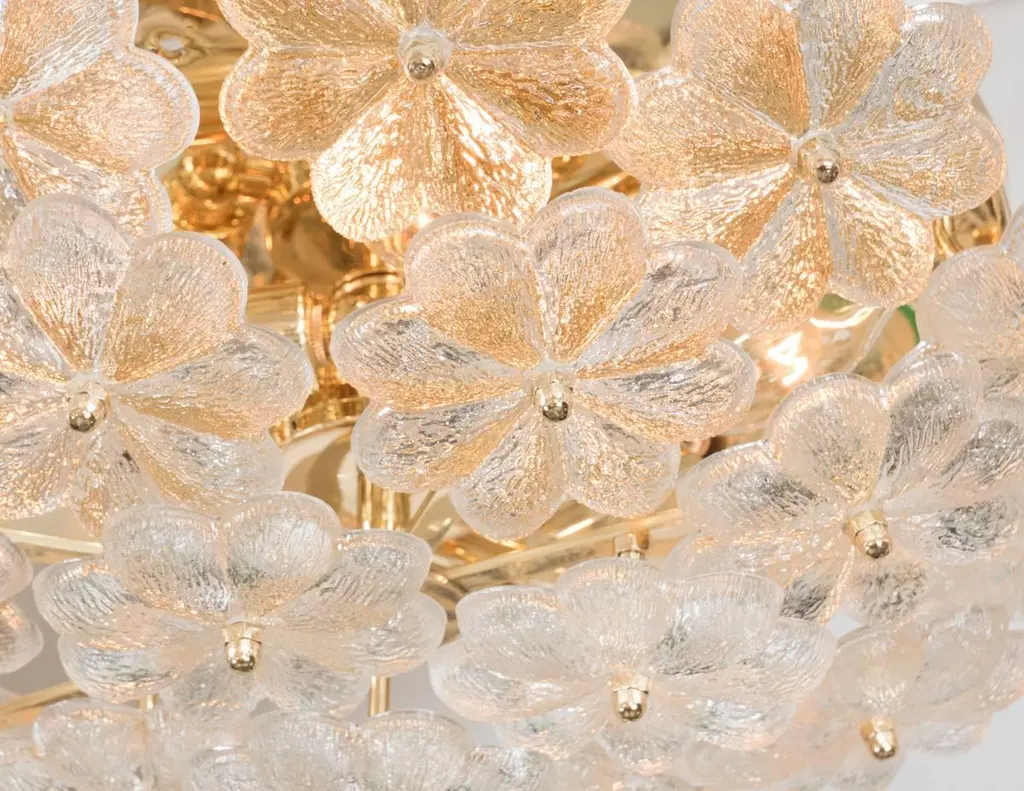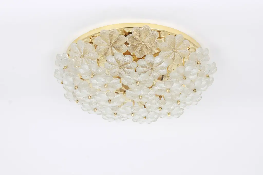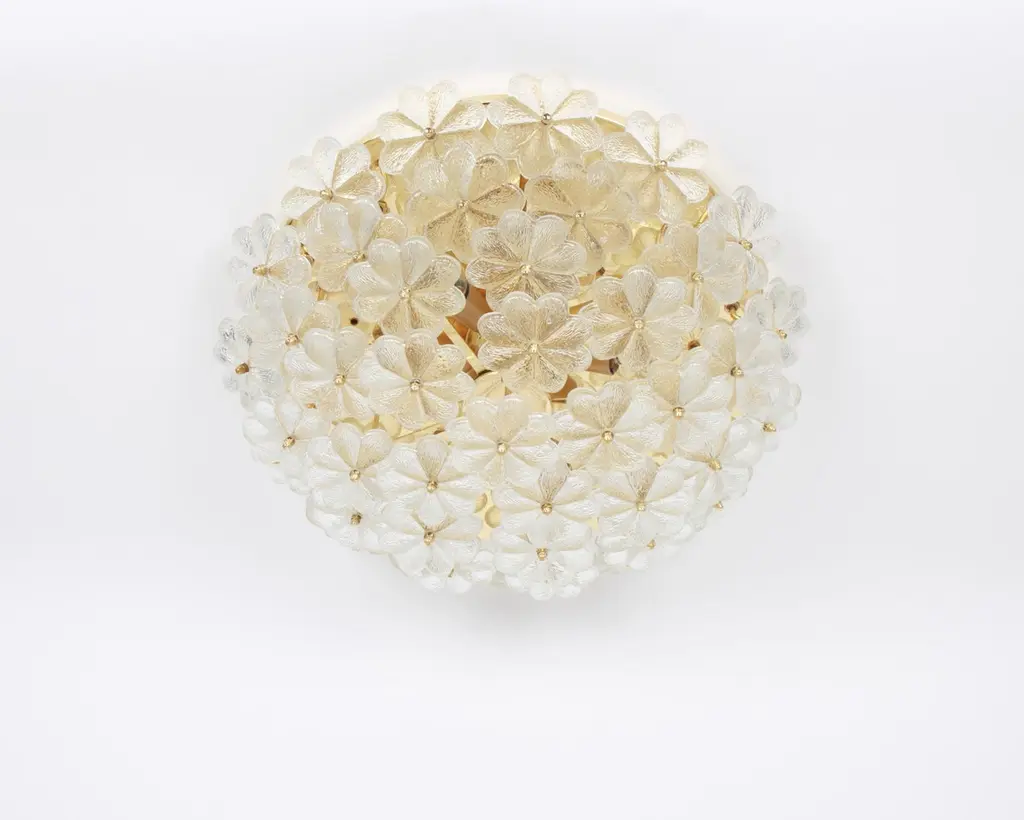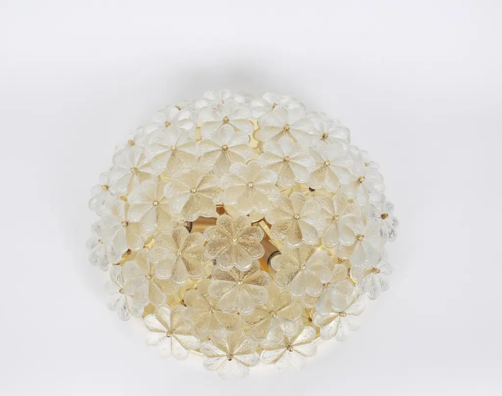 1 Of 4 Large Murano Glass Flower Flushmount, Ernst Palme, Germany, 1970s