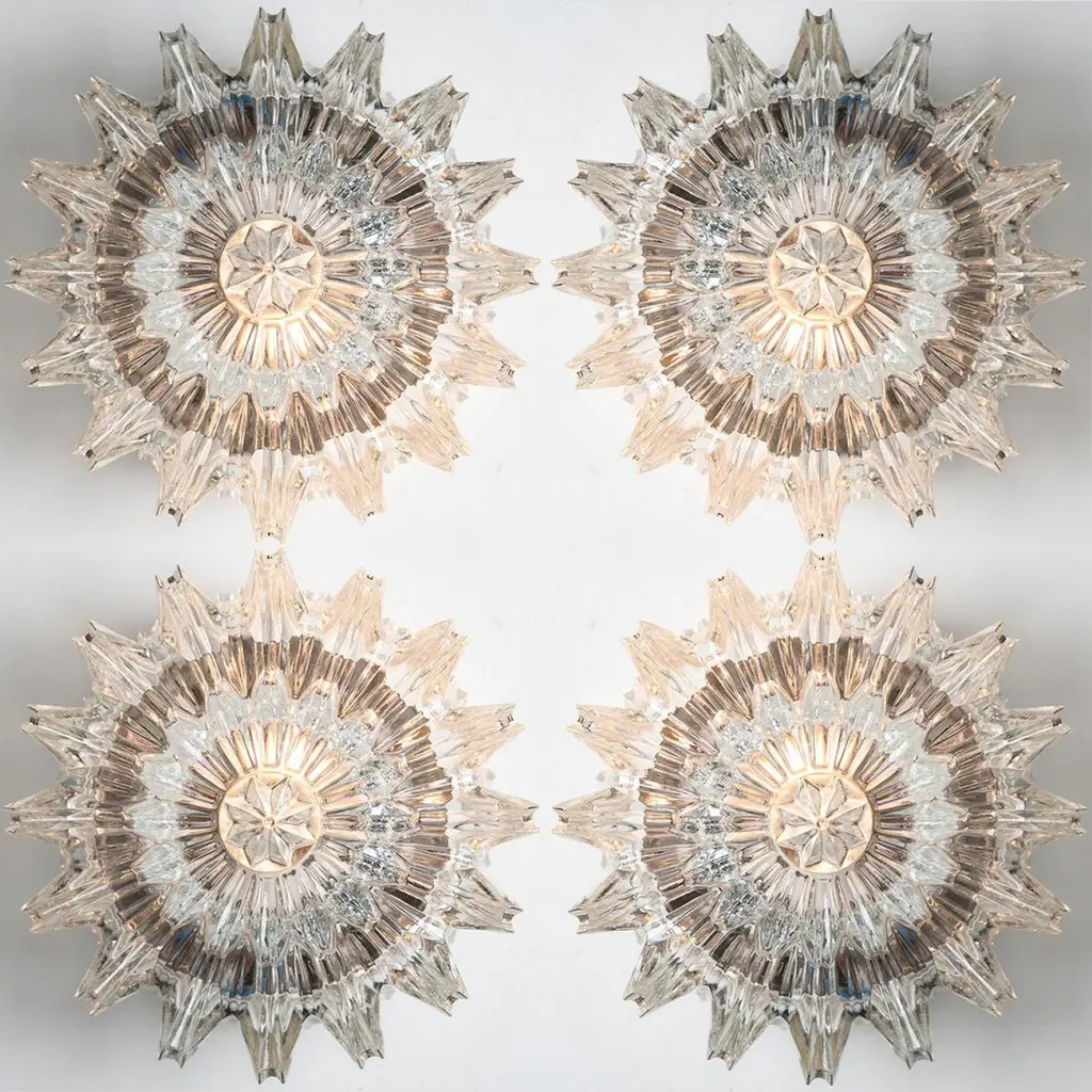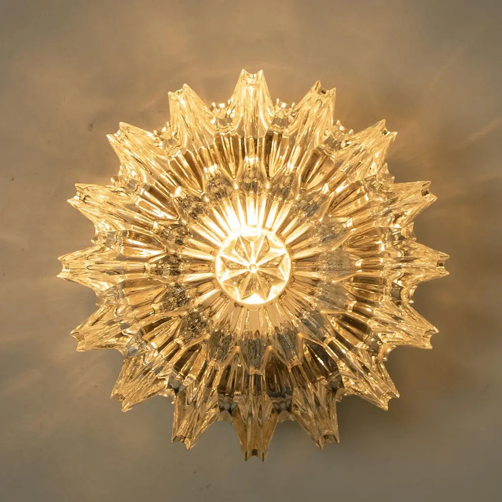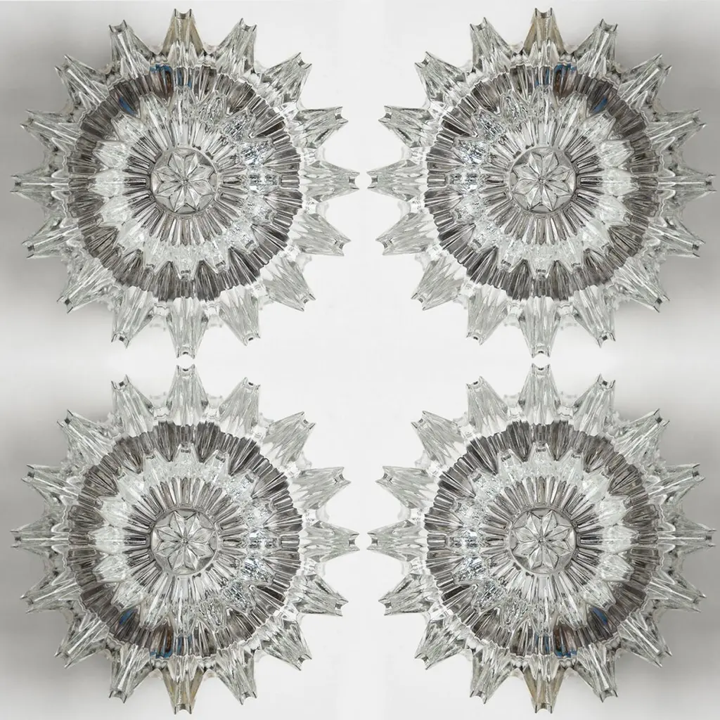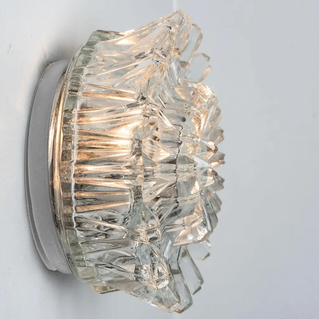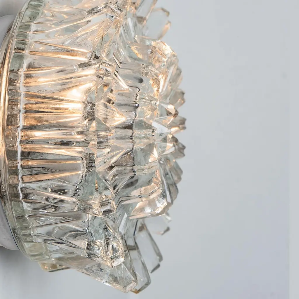 1 Of 4 Putzler Wall Lights, Sculptural Clear Glass, 1970s