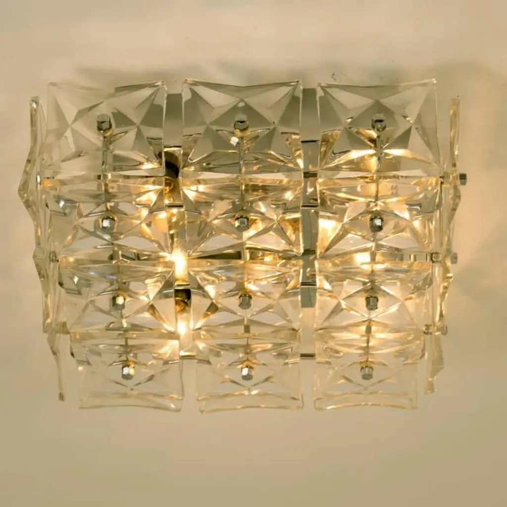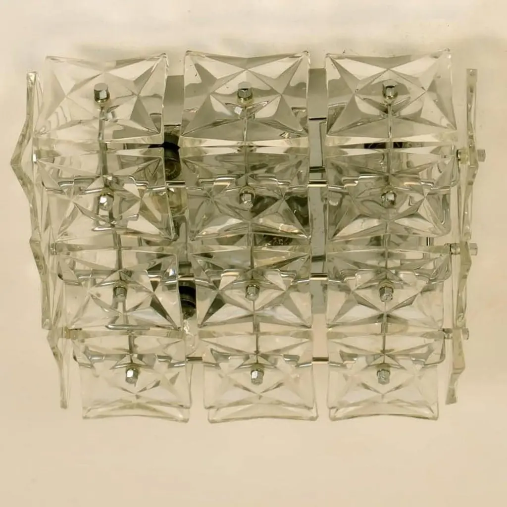 1 Of 5 Kinkeldey Wall Lights Or Flushmounts, Nickel Crystal Glass, 1970s