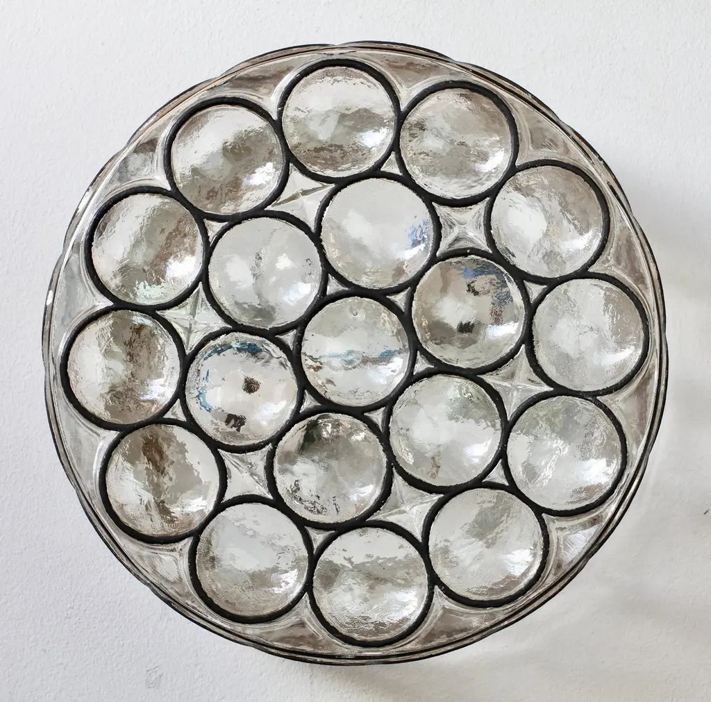 1 Of A Pair Of Limburg Large Circular Iron Rings & Glass Flushmount Lights 1960s