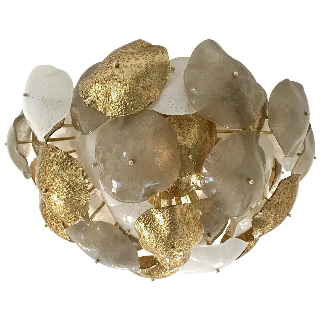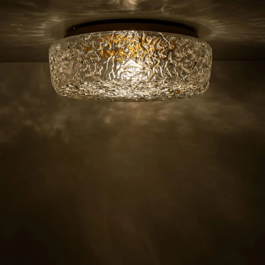 1 Of The 10 Round Clear Textured Glass Flush Mount, In Style Of Limburg