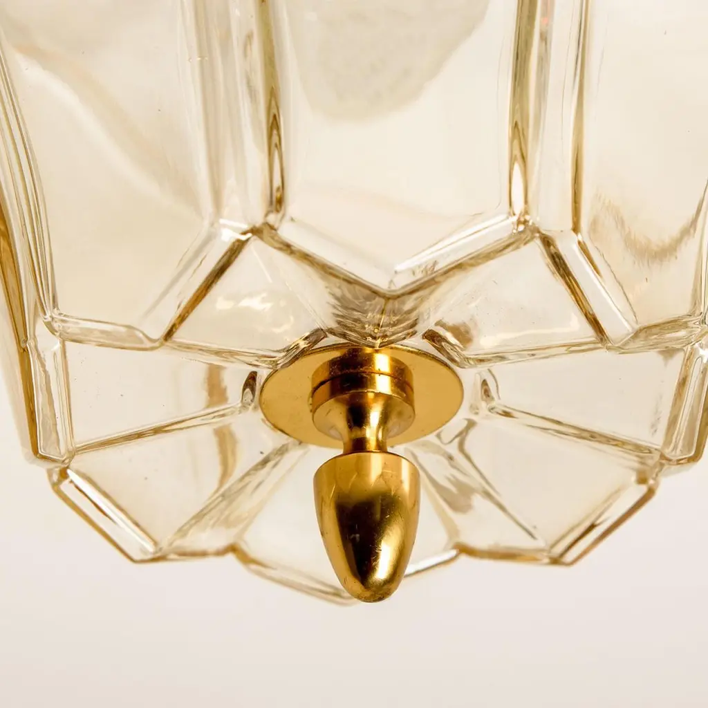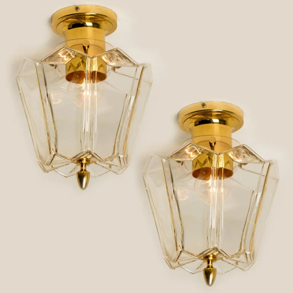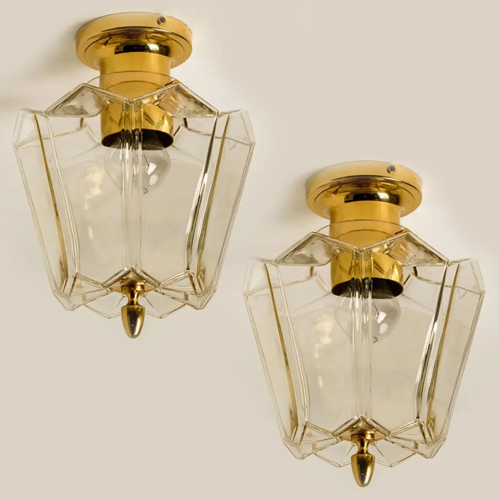 1 Of The 2 Flower Shaped Clear Glass And Brass Flush Mounts By Limburg, 1970