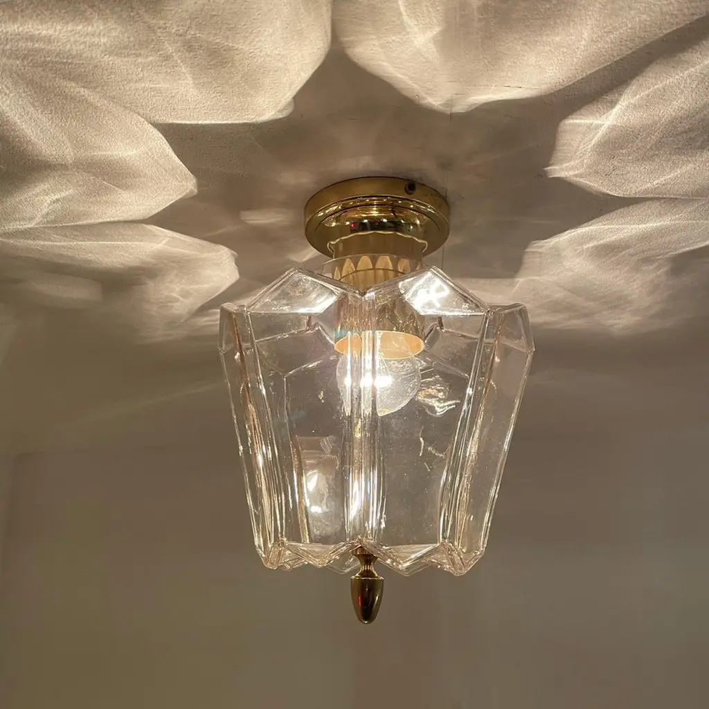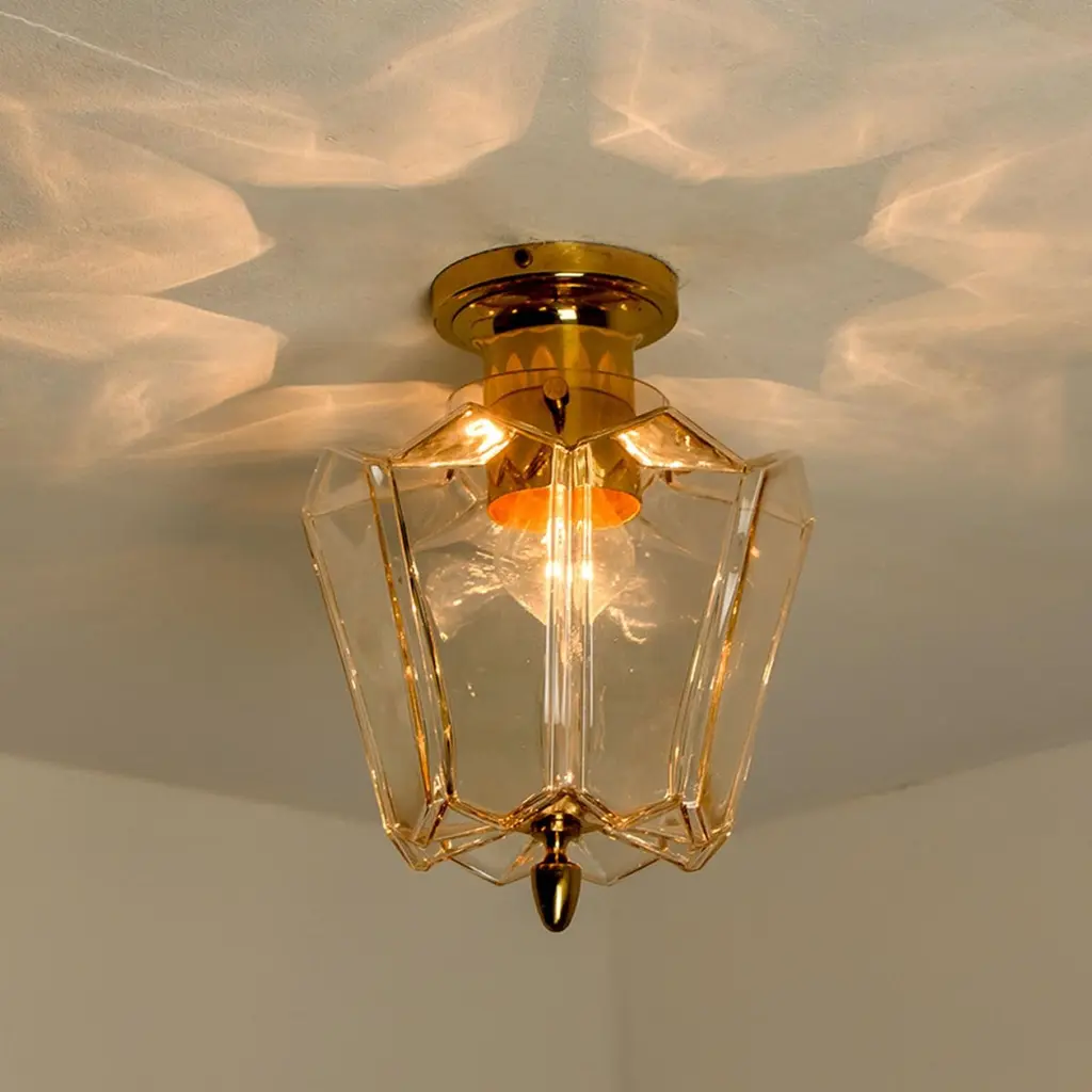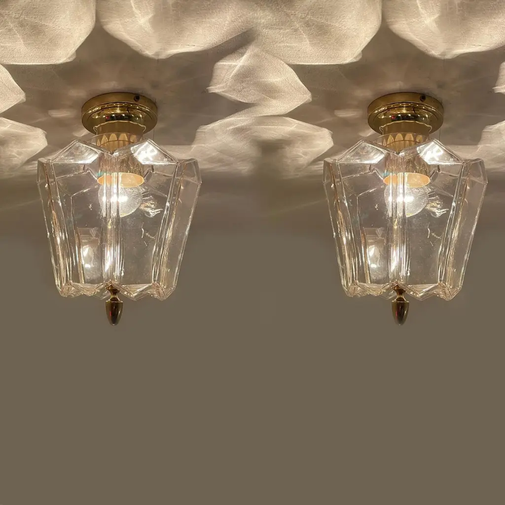 1 Of The 2 Flower Shaped Clear Glass And Brass Flush Mounts By Limburg, 1970