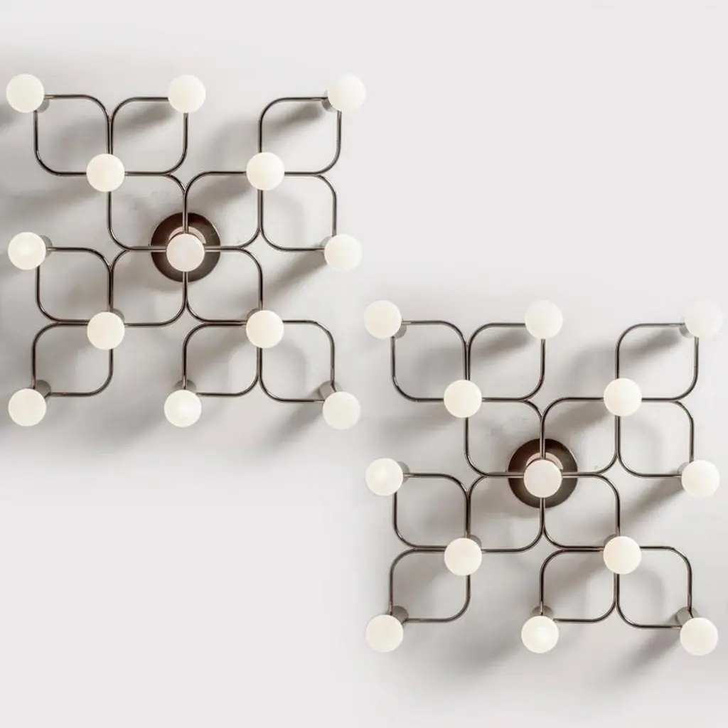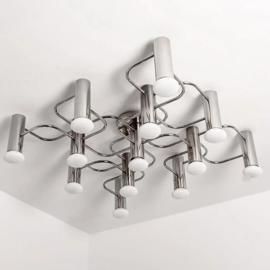 1 Of The 2 Leola Sculptural Chrome 9-Light Ceiling Or Wall Flush Mount, 1970