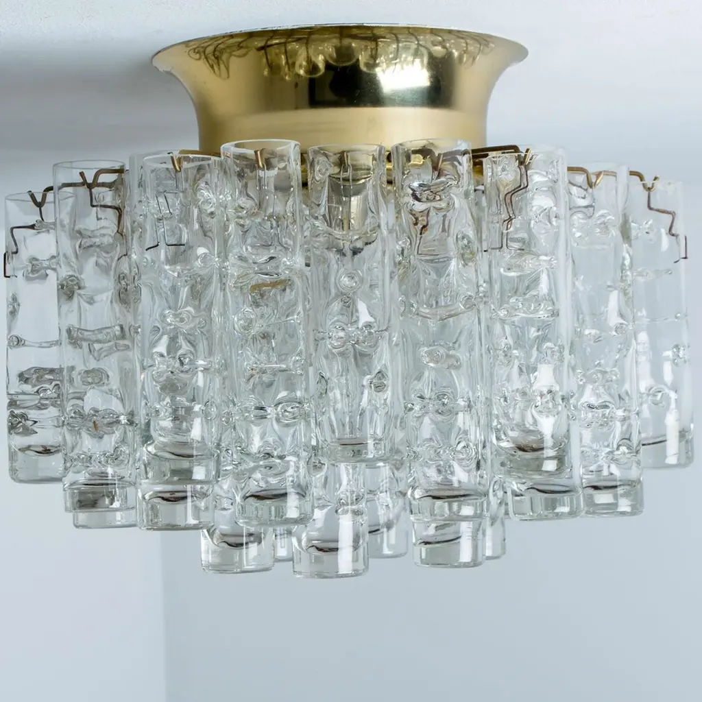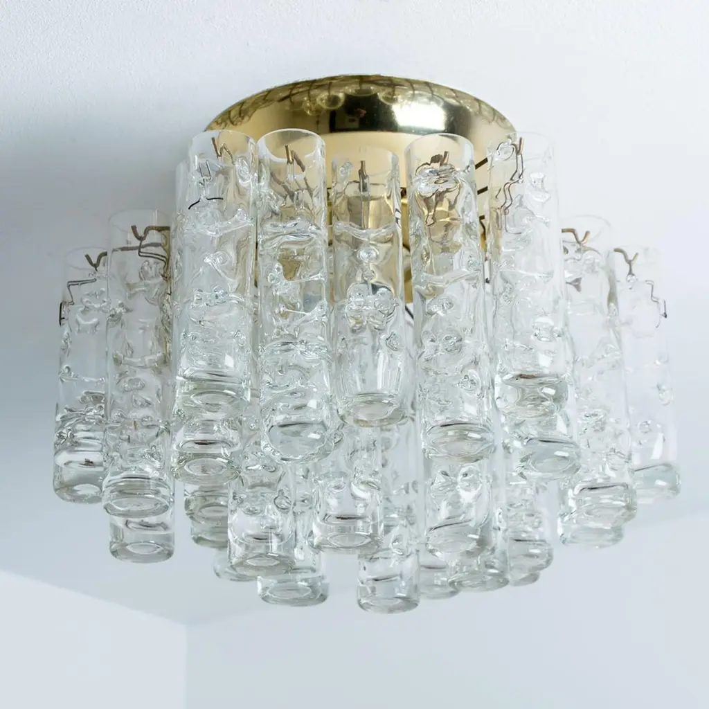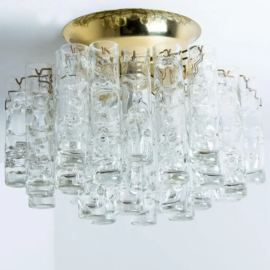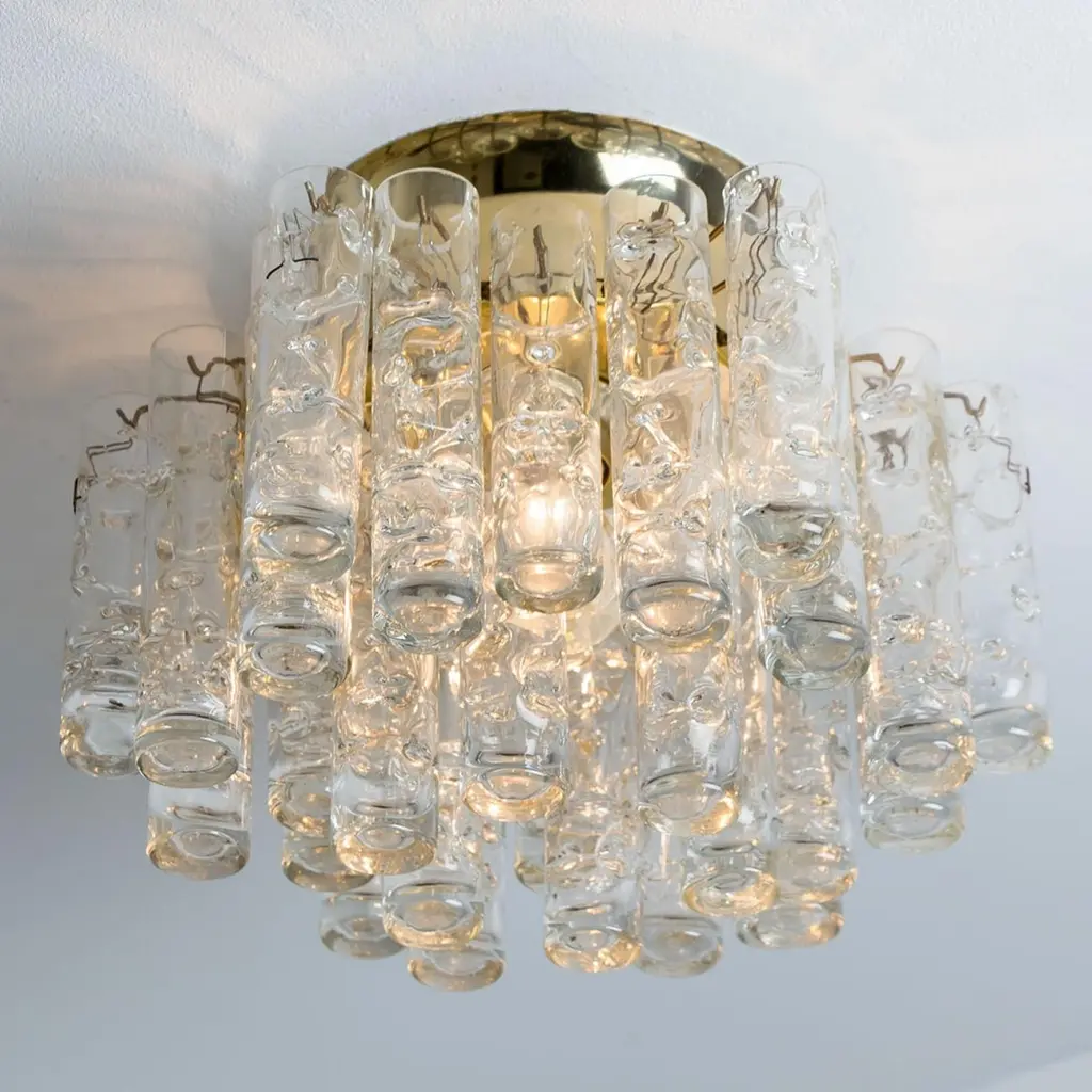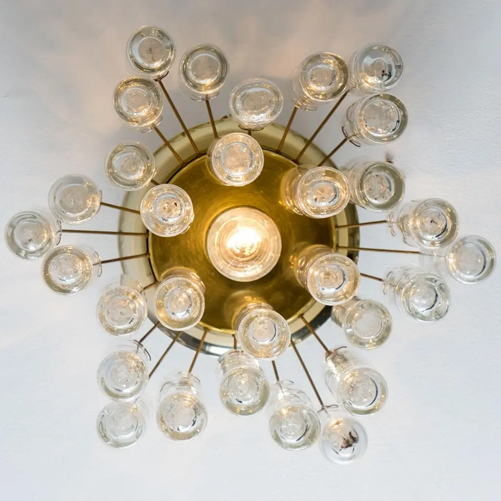 Star-shaped glass flush mount, manufactured by Doria Leuchten Germany in circa 1960.This handmade light consists of a brass base with an array of high/end textured round tube-shaped art glass rods. Due the combination of materials, opal and clear glass, these lights will create a beautiful warm and diffuse light.Dimensions:Height: 19.68" (50 cm)Diameter: 11.02" (28 cm)Please notice the price is for 1 piece, two pieces available.Cleaned and well-wired, in full working order and ready to use. The brass frame is in very good condition. The wall lights can be disassembled and the glass individually wrapped for easy transport. The fixture requires 1 E14 standard bulb. Also LED compatible.