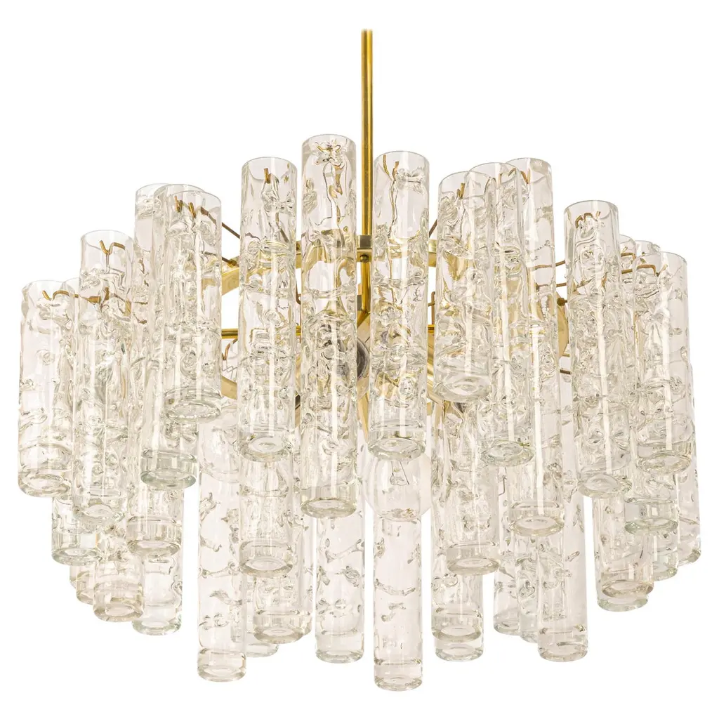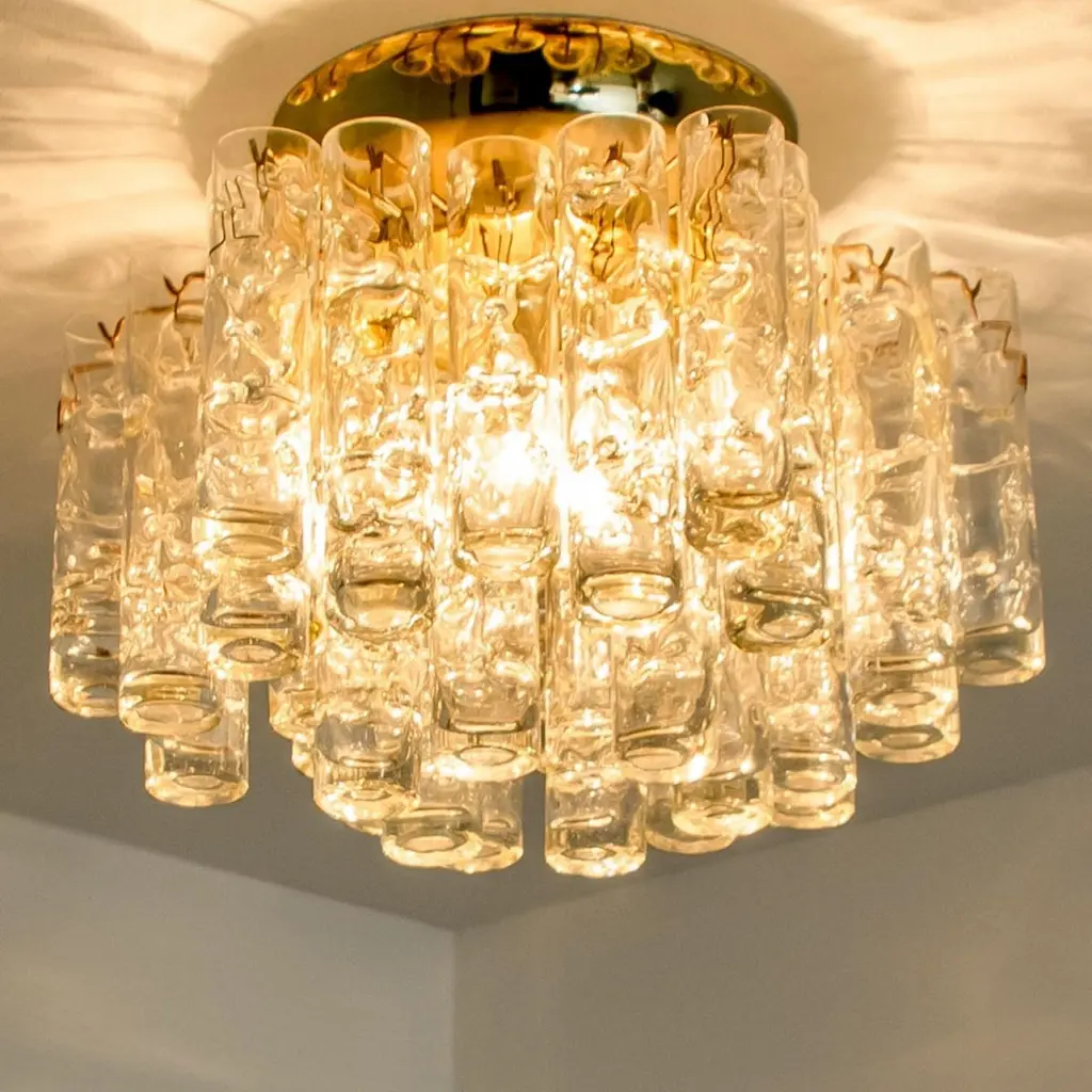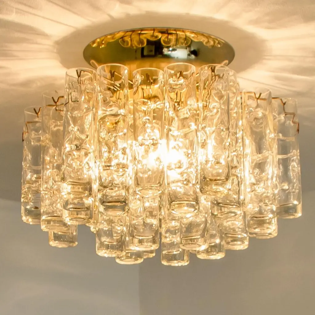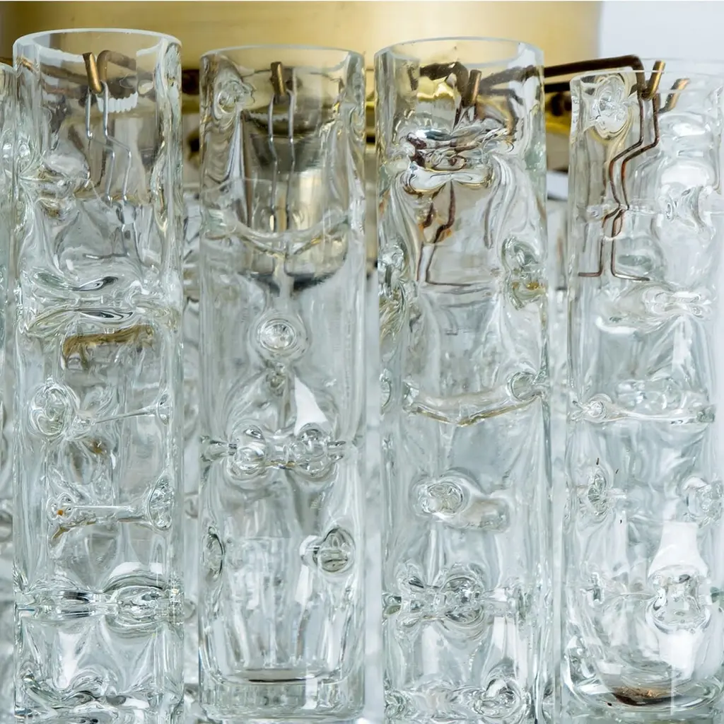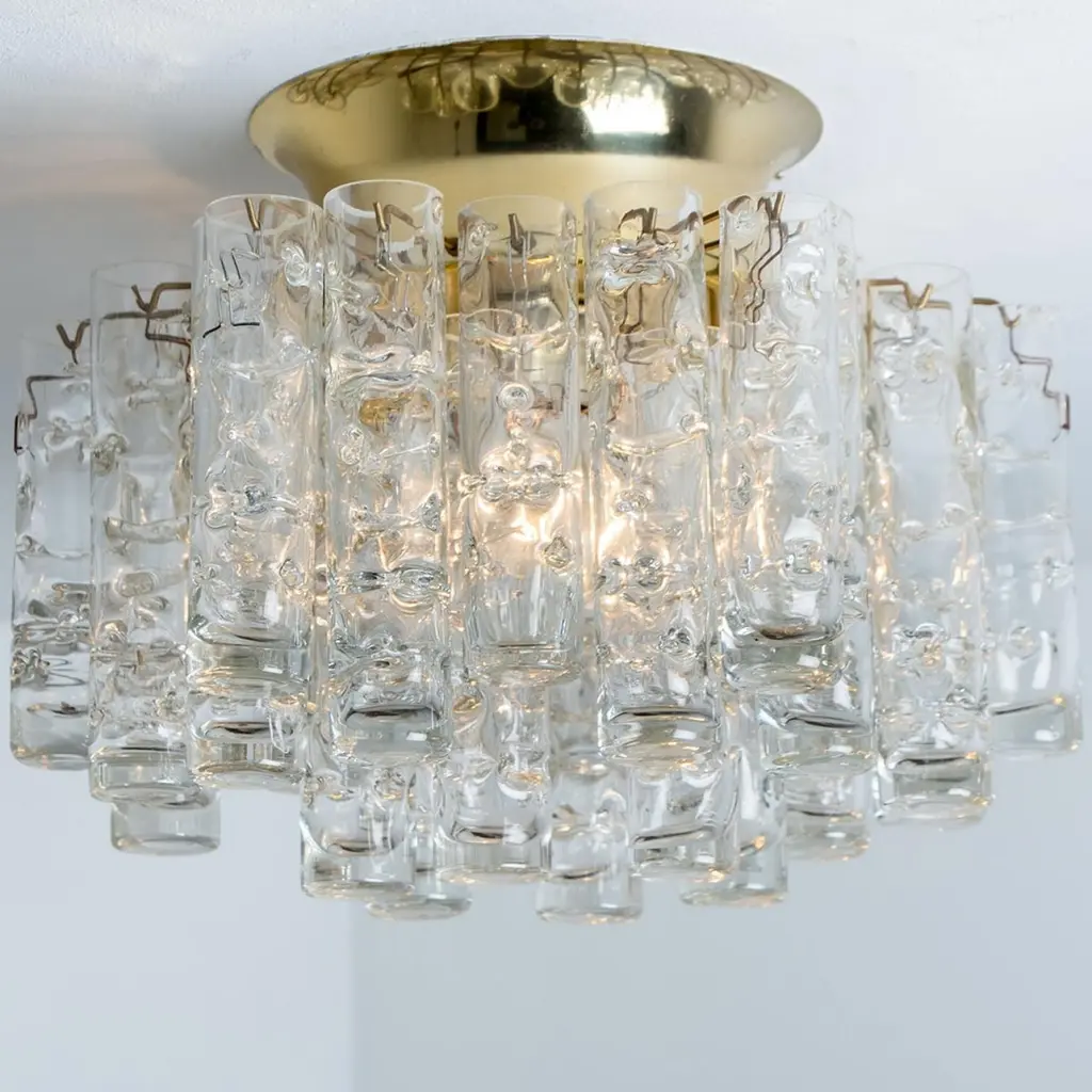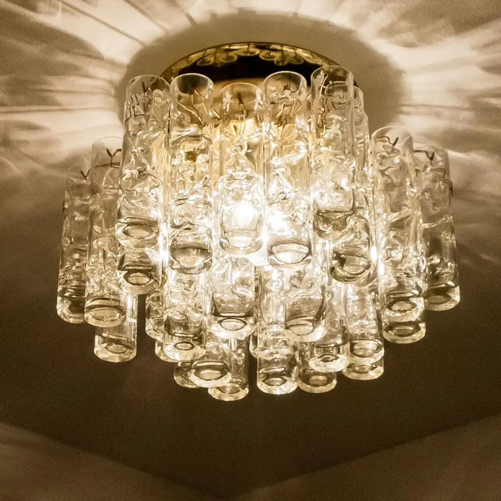 Star-shaped glass flush mount, manufactured by Doria Leuchten Germany in circa 1960.This handmade light consists of a brass base with an array of high/end textured round tube-shaped art glass rods. Due the combination of materials, opal and clear glass, these lights will create a beautiful warm and diffuse light.Dimensions:Height: 19.68" (50 cm)Diameter: 11.02" (28 cm)Please notice the price is for 1 piece, two pieces available.Cleaned and well-wired, in full working order and ready to use. The brass frame is in very good condition. The wall lights can be disassembled and the glass individually wrapped for easy transport. The fixture requires 1 E14 standard bulb. Also LED compatible.