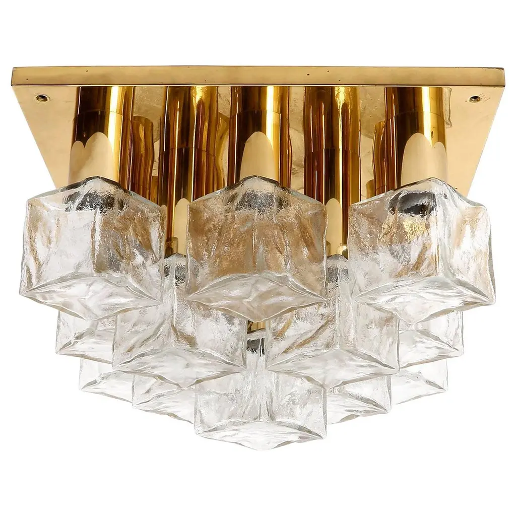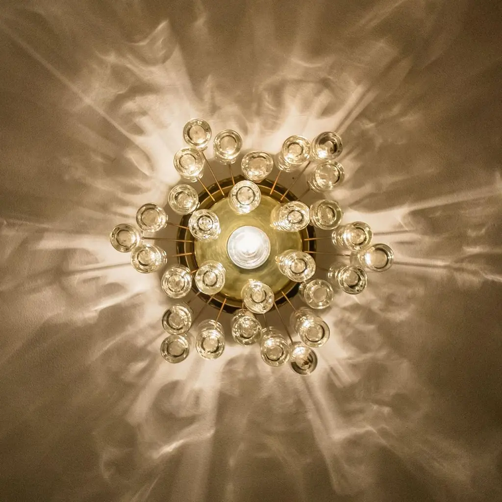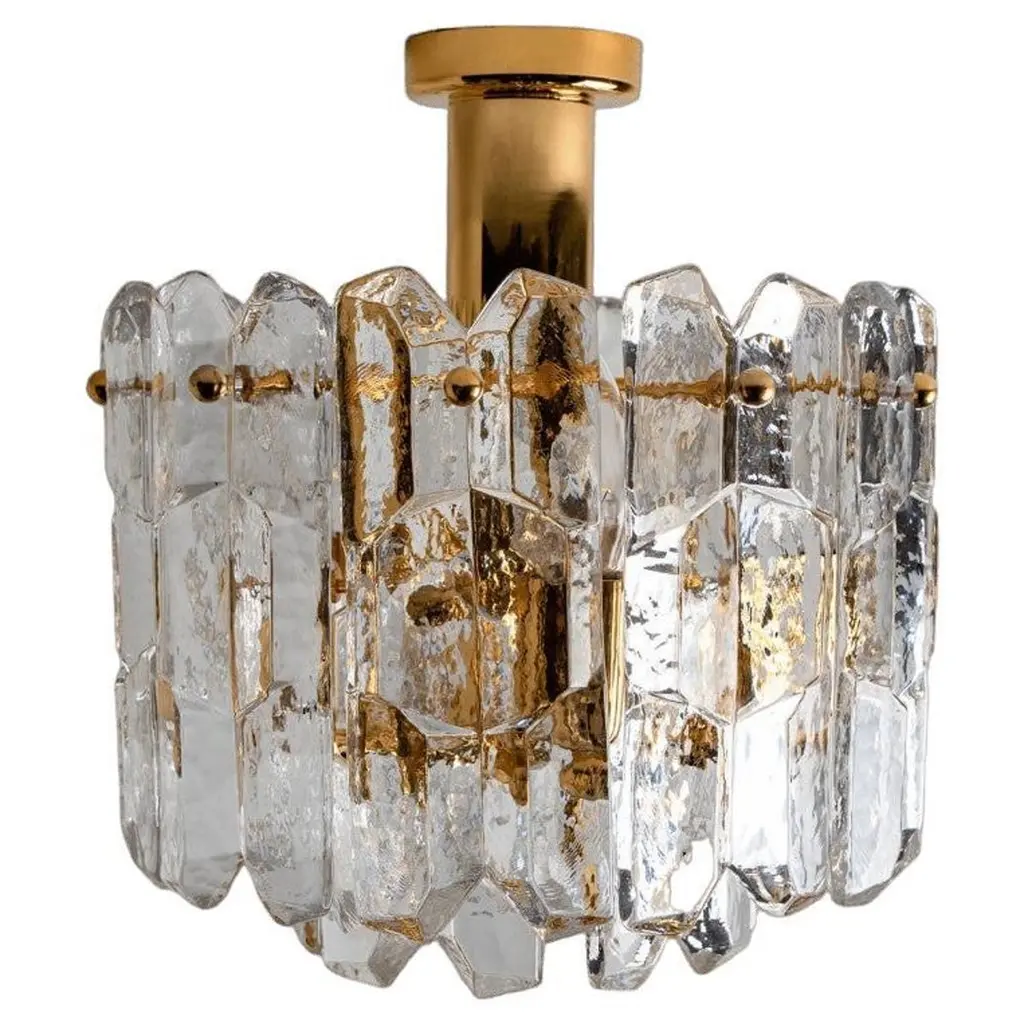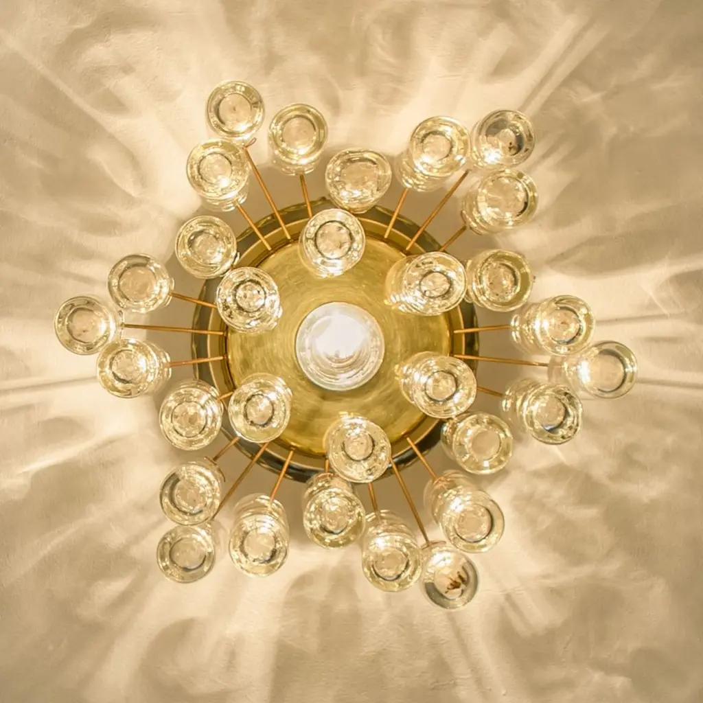 1 Of The 2 Round Textured Clear Glass Gold Flush Mount, 1960s, Doria Leuchten