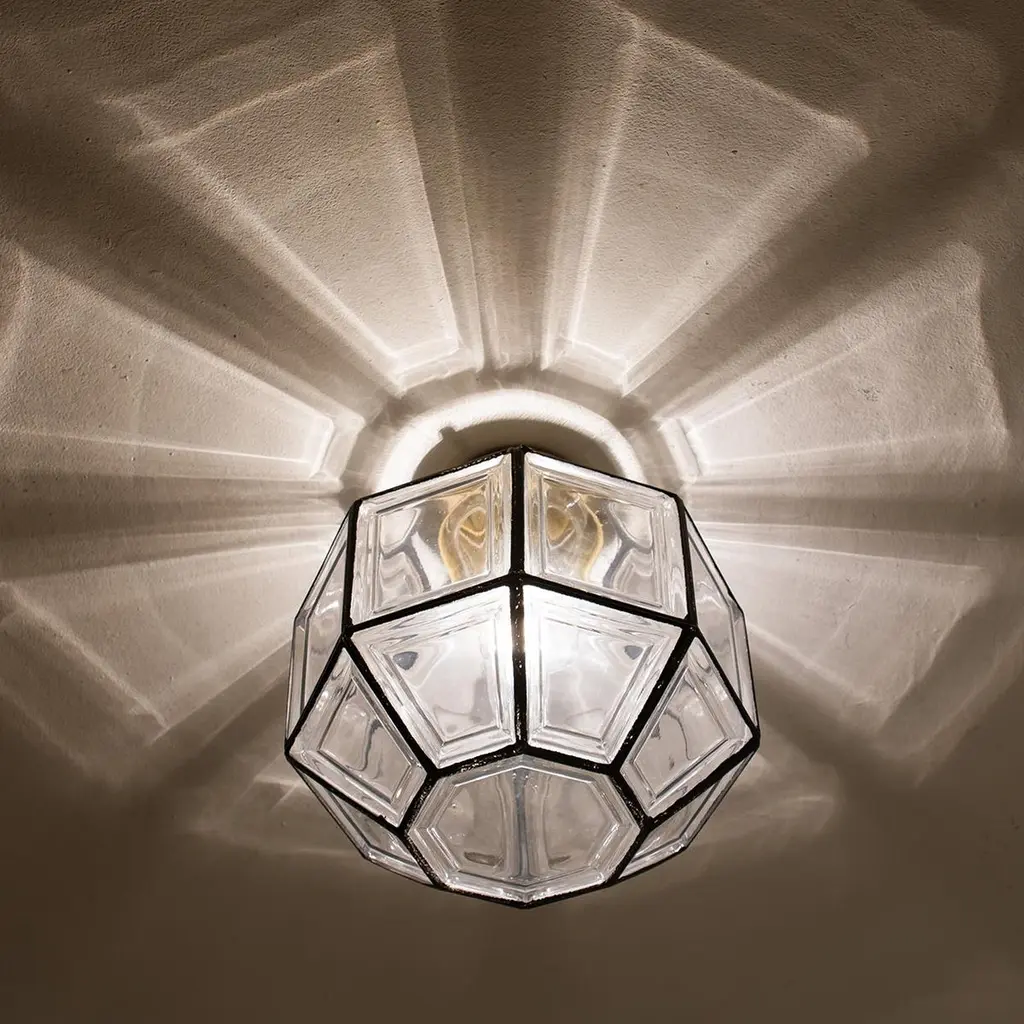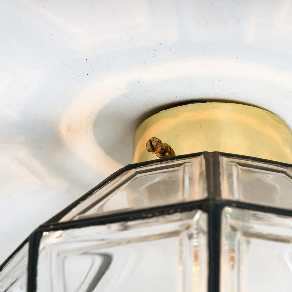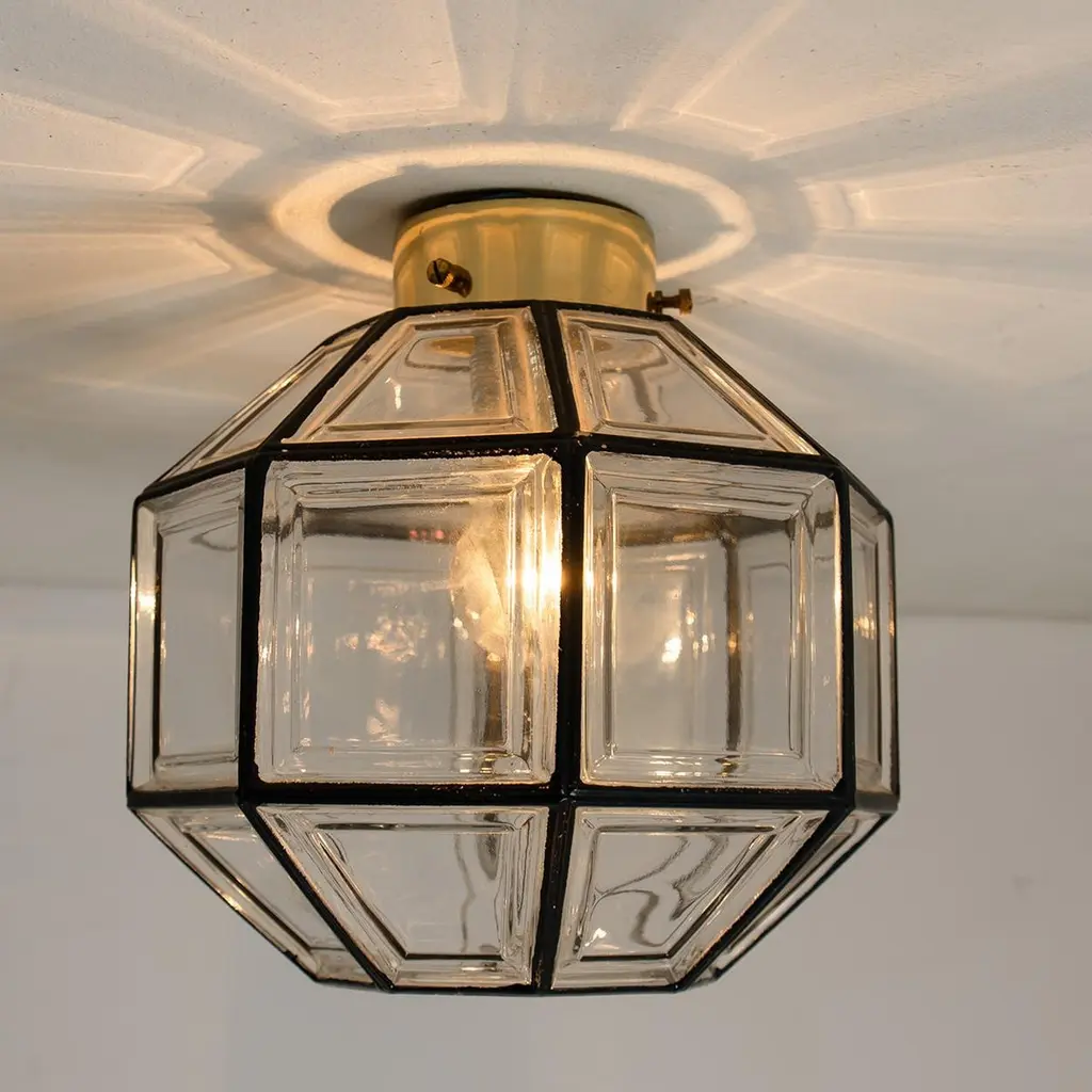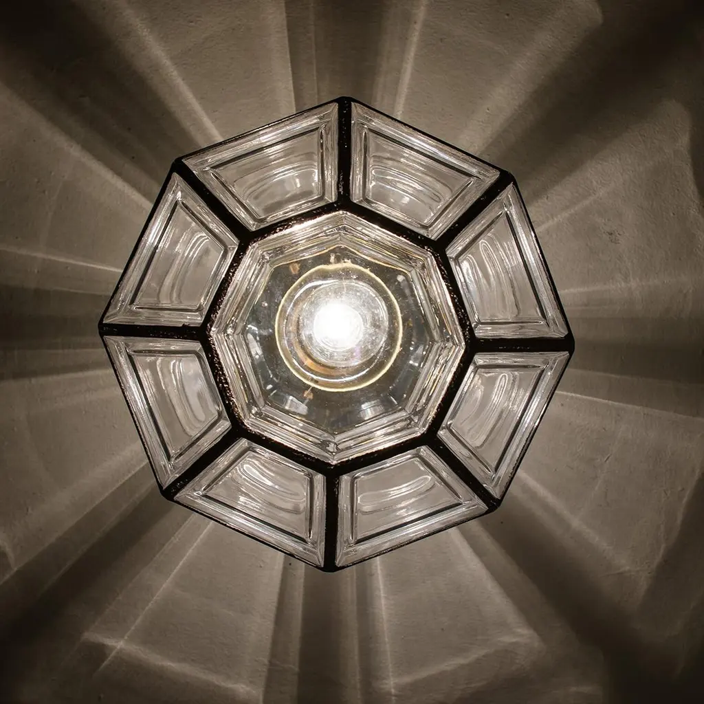 A beautiful set of octagonal glass light flush mounts or wall lights, manufactured by Glasshütte Limburg in Germany during the 1970s. Beautiful craftsmanship. Illuminates beautifully. They come from an old grand hotel in Germany.Please note the price is for a set. 4 sets available. Measurements: diameter 10.2 "26 cm (8 pieces).In very good condition, cleaned and well wired. Each lamp, features one E27 socket and brass suspension.