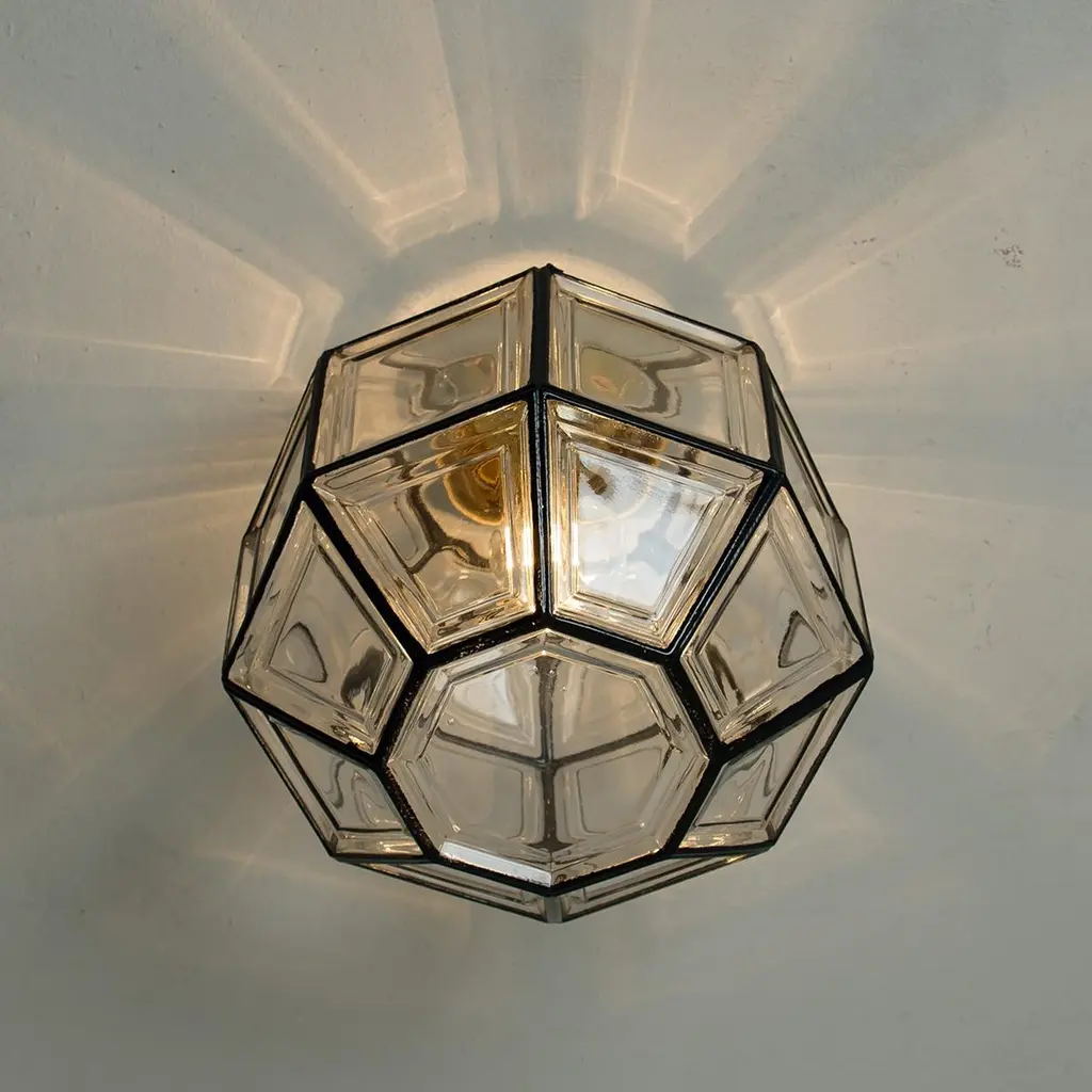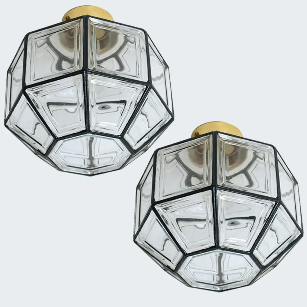1 Of The 4 Pairs Iron And Clear Glass Flush Mounts By Limburg, 1970
