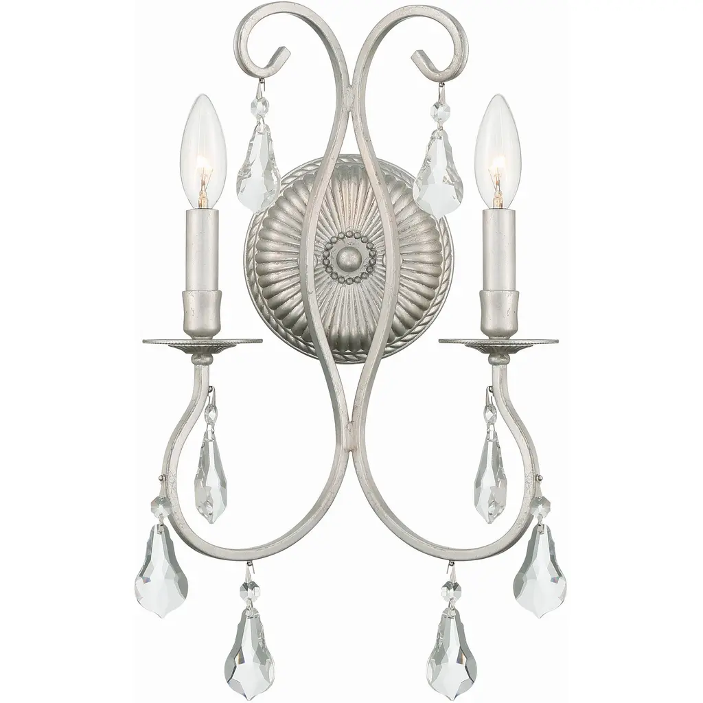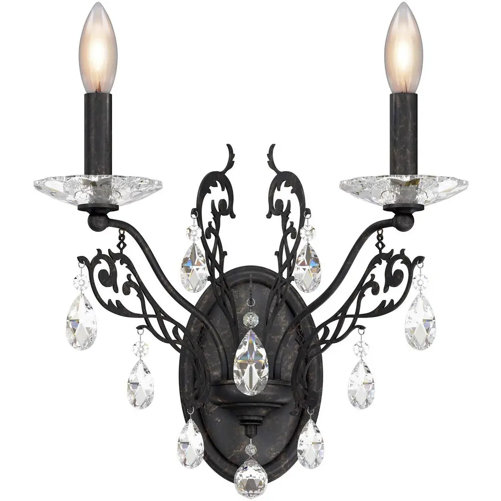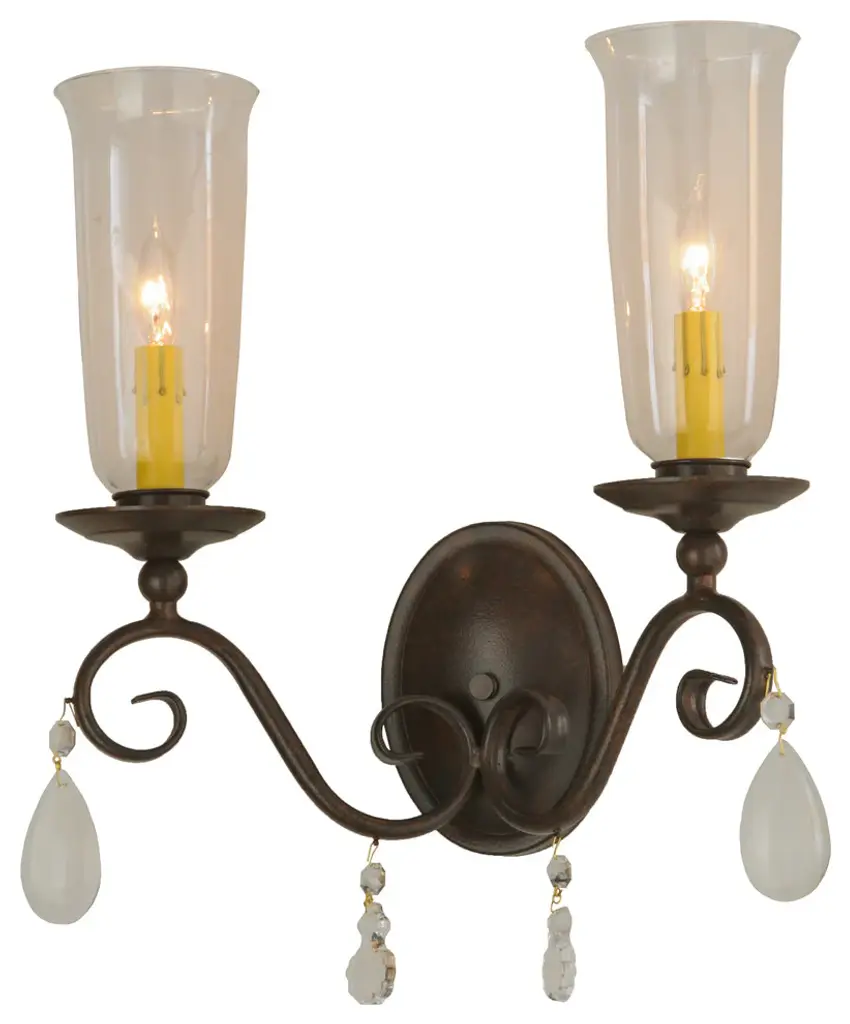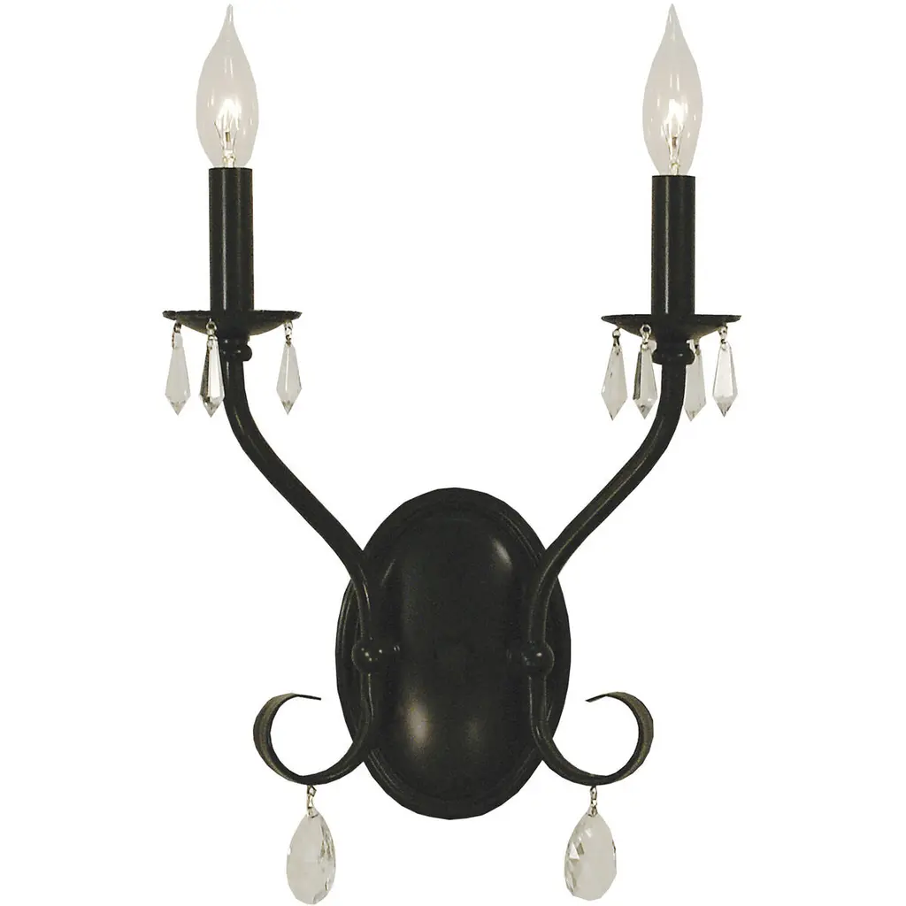 Exquisite styling and luxurious charm are reflected in Antonia. This wall sconce features faceted Crystal accents; Acanthus leaf bobeches and rich Cajun Spice finished Hand-Forged Iron scrollwork. This elegant wall sconce embraces 2 Ivory faux candlelights. This wall fixture features hand detailed American craftsmanship perfected by years of time honored artistry; passed down from generations of highly skilled artisans. Handcrafted in our 180;000 square foot manufacturing facility in Yorkville; New York. Candlelight colors; metal finishes and sizes can be customized to meet your needs. UL and cUL listed for dry and damp locations.