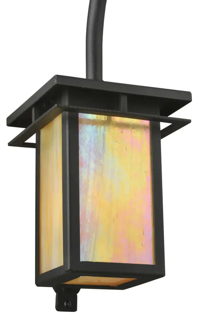 The 1-Light Prairie Style Outdoor Wall Lantern Sconce Oil-Rubbed Bronze and Stained Glass from River of Goods brings a little extra character and warm, comforting lighting to your home’s exterior. This light sconce features a traditional lantern design with a bronze look for sleek appeal, while the shade is crafted using cut and stained glass in amber, gray and white hues for statement style. Plus, the glass features an oil-rubbed finish to help prevent scratches. The housing is made from durable metal to lend lasting use and an authentic look you'll appreciate. Mount this stained glass wall lantern on the wall near an entry or patio for a gorgeous addition to your exterior.