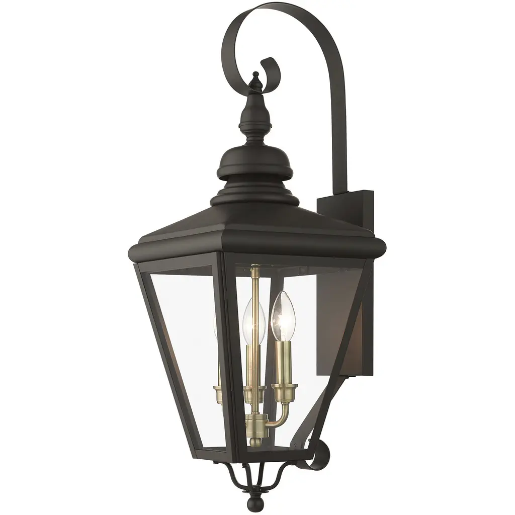 Tiamo features a timeless look and classic design of a stately lantern that has illuminated the finest interiors and exteriors. The Clear Seeded Glass shade reveals 2 Customer supplied candelabra lamps with complementary candle covers finished in a Blackwash hue to match the stunning Solid Brass frame; decorative finial; and hardware. Custom crafted in our 180;000 square foot manufacturing facility in Upstate New York; this wall fixture is available in custom sizes; styles; and colors. Dimmable energy efficient lamping options are available. The 11-inch wide lantern sconce is UL and cUL listed for dry; damp and wet locations.