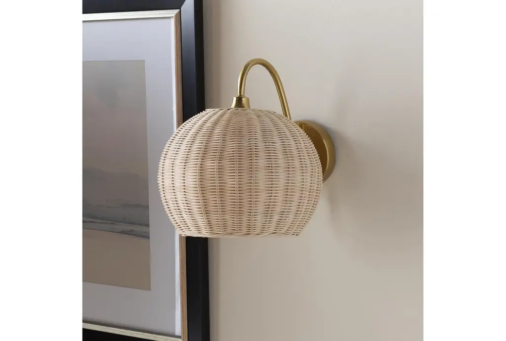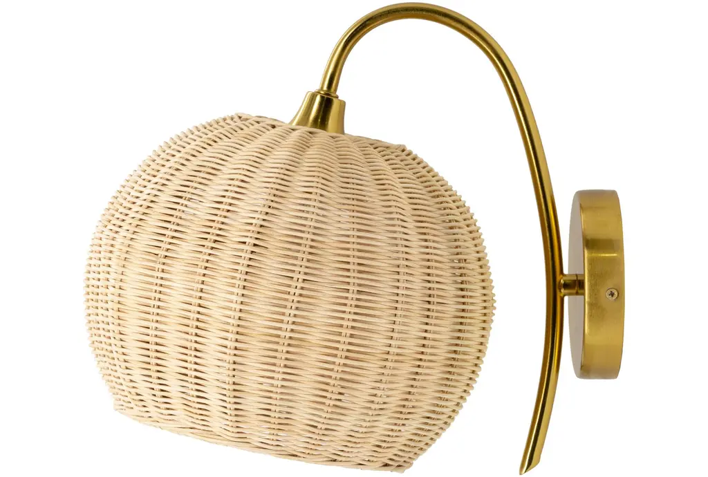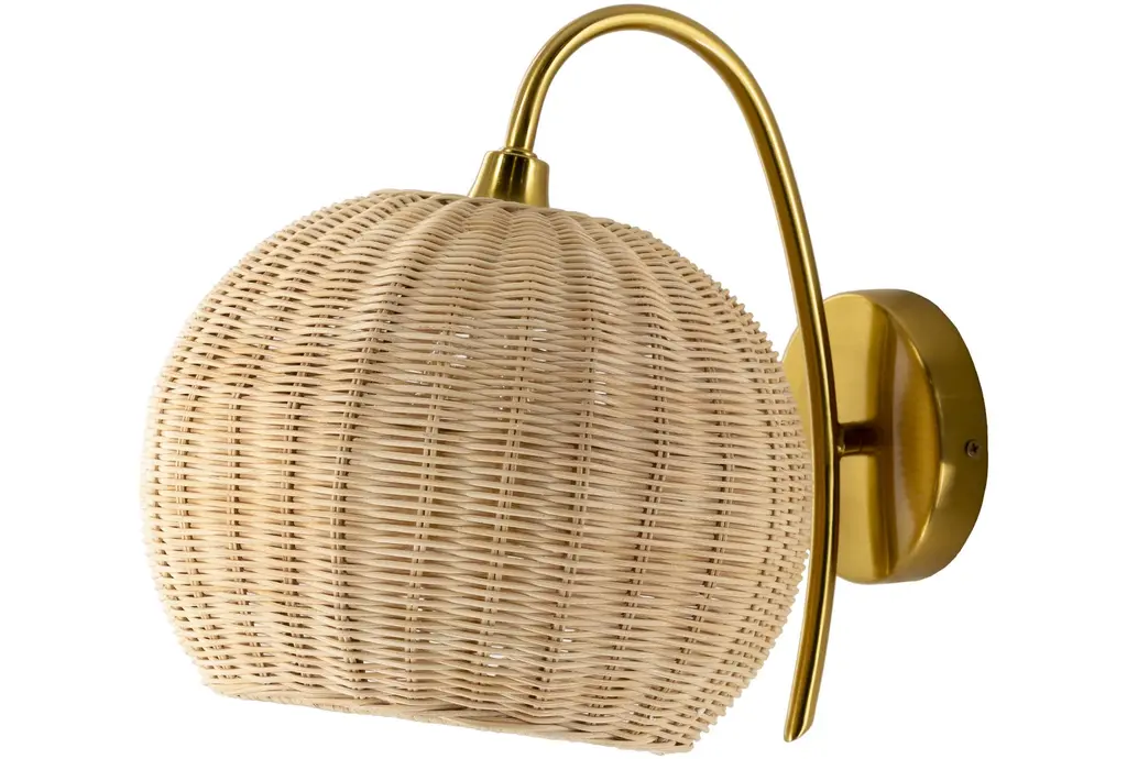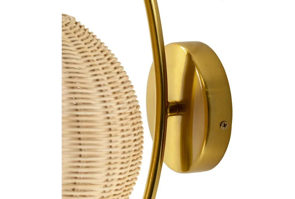 12" Metal Rattan Globe + Gold Wall Sconce By Surya