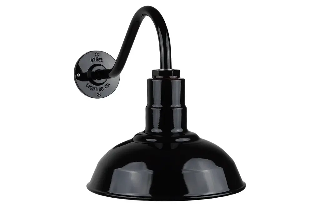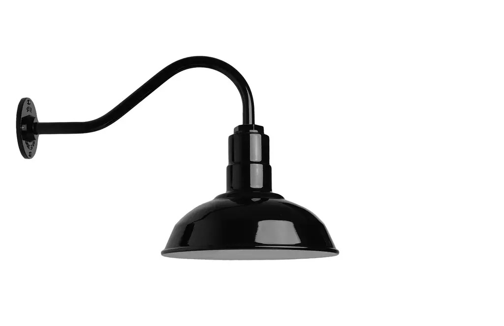 12" Modern Farmhouse Barn Light With 16" Gooseneck, The Westchester, Black