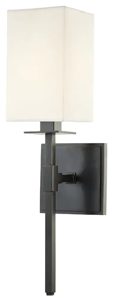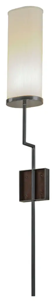 Defined by an appealing transitional look, a sophisticated Off-White Textrene shade with color coordinated trim is enhanced with a White Ida light bottom diffuser. The shade is embraced by a steel wall mount featured as a cantilever design in a stunning Armoire Hickory finish. The hardware appears much like a fine piece of furniture that captures a warmth of relaxation and serenity to enhance modern living. Custom crafted at the Meyda manufacturing facility, at the foothills of the Adirondack Mountains. This sconce is UL and cUL listed for damp and dry locations. UL Approved: YesBulb Type: MEDBulb Quantity: 1Bulb Wattage: 12Bulbs Included: No