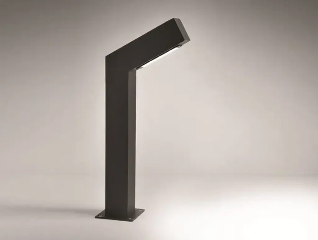 The Slide LED Path Light reworks a classic wall sconce into an architectural Landscape Path Light work of art. The unique geometric shape appears to curve slightly away from the base. Energy efficient LEDs create a dynamic ambient downlight, resulting in a dramatic effect any landscape. Features