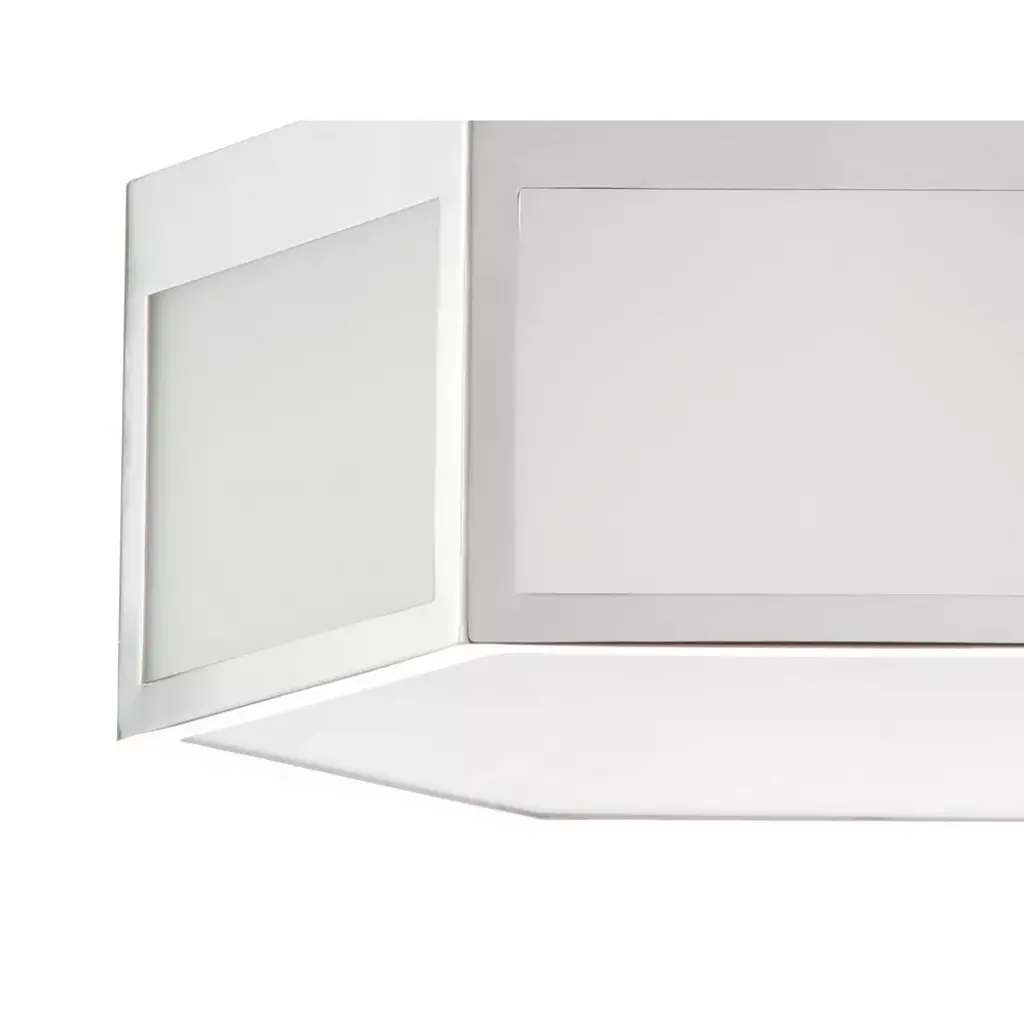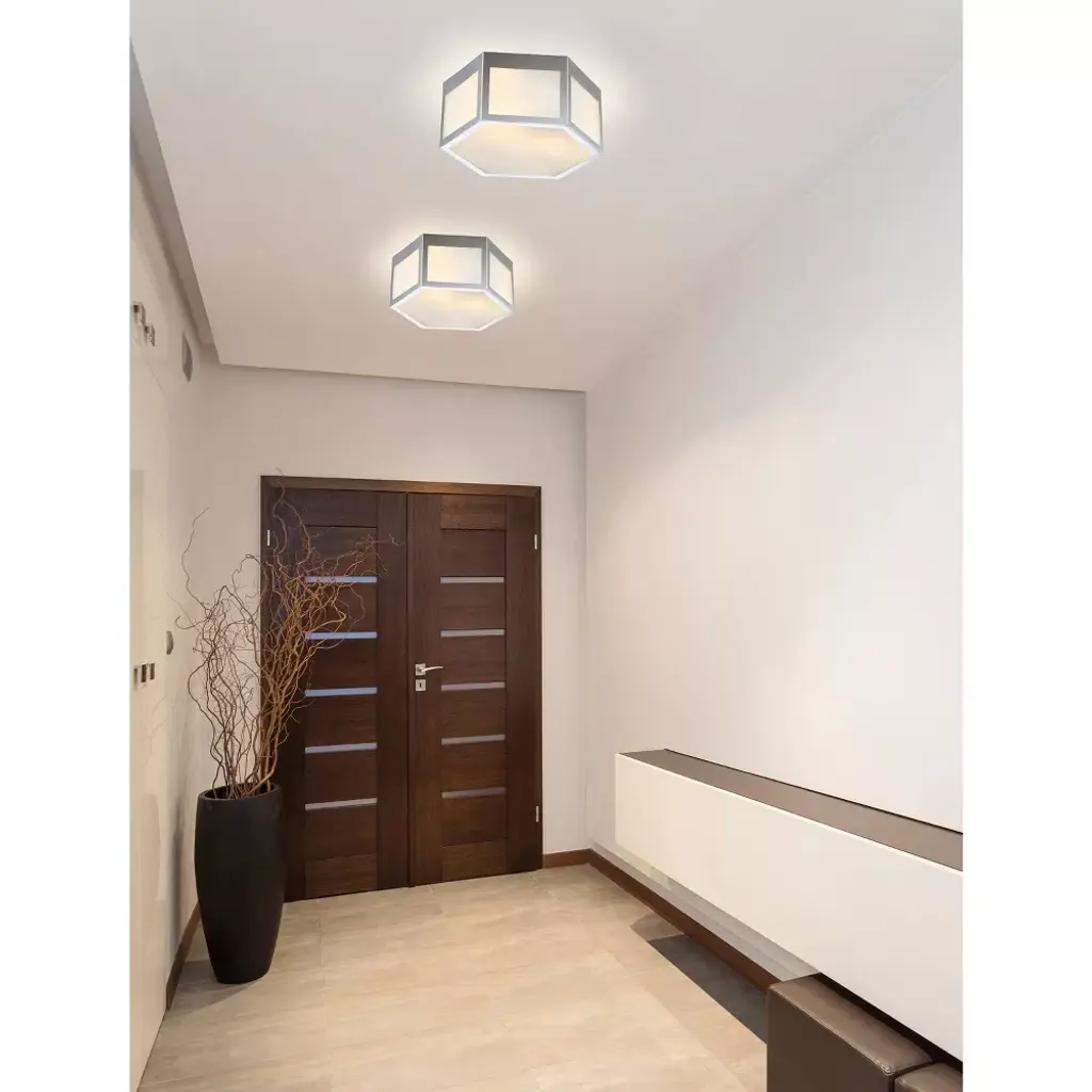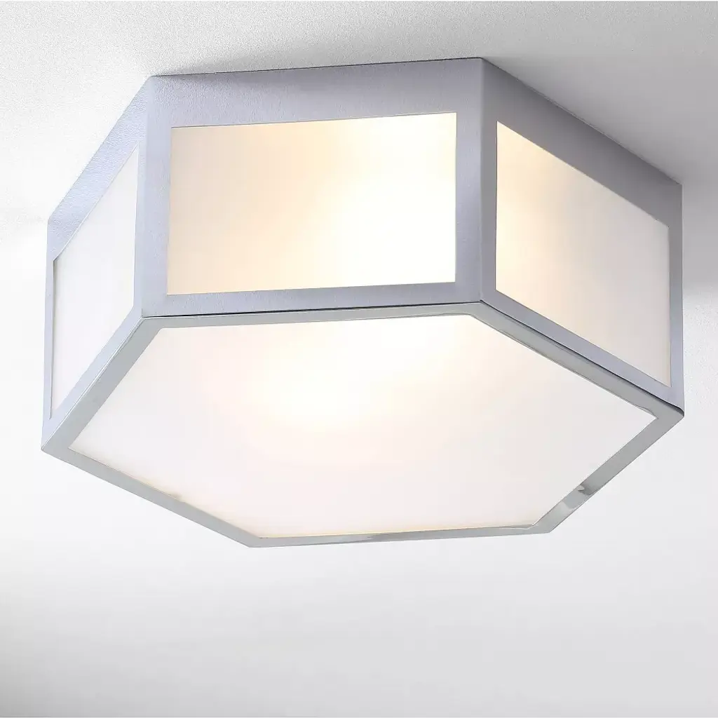 Update your home with our minimalist take on a hexagonal, flush-mounted lantern. Two included LED bulbs provide plenty of bright light, softened by frosted glass panels. The chrome finish adds low-key sparkle to a dining room, kitchen, living room, bedroom, hallway, or foyer - replace old ceiling fixtures for an instant modern makeover.
