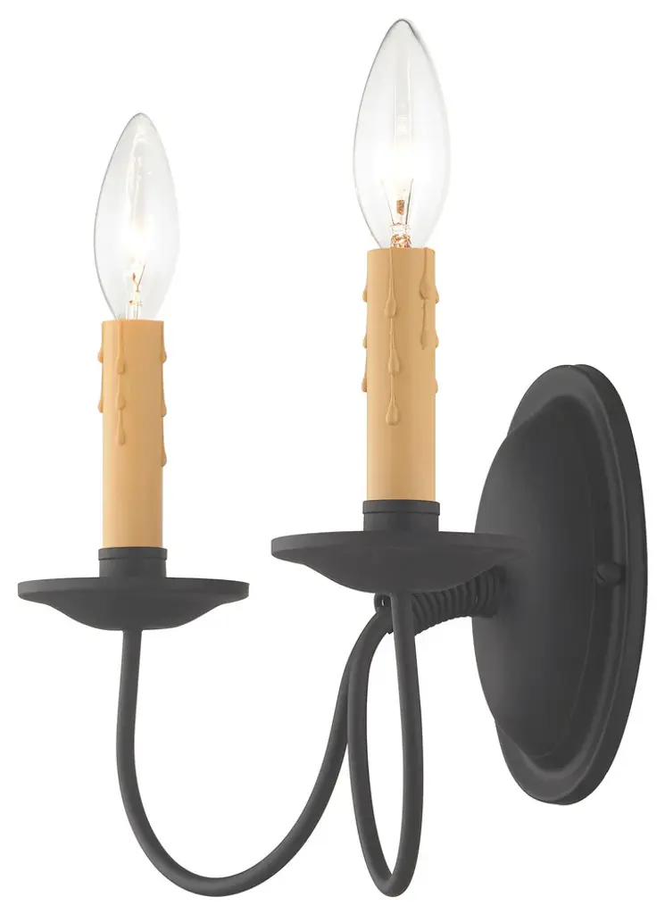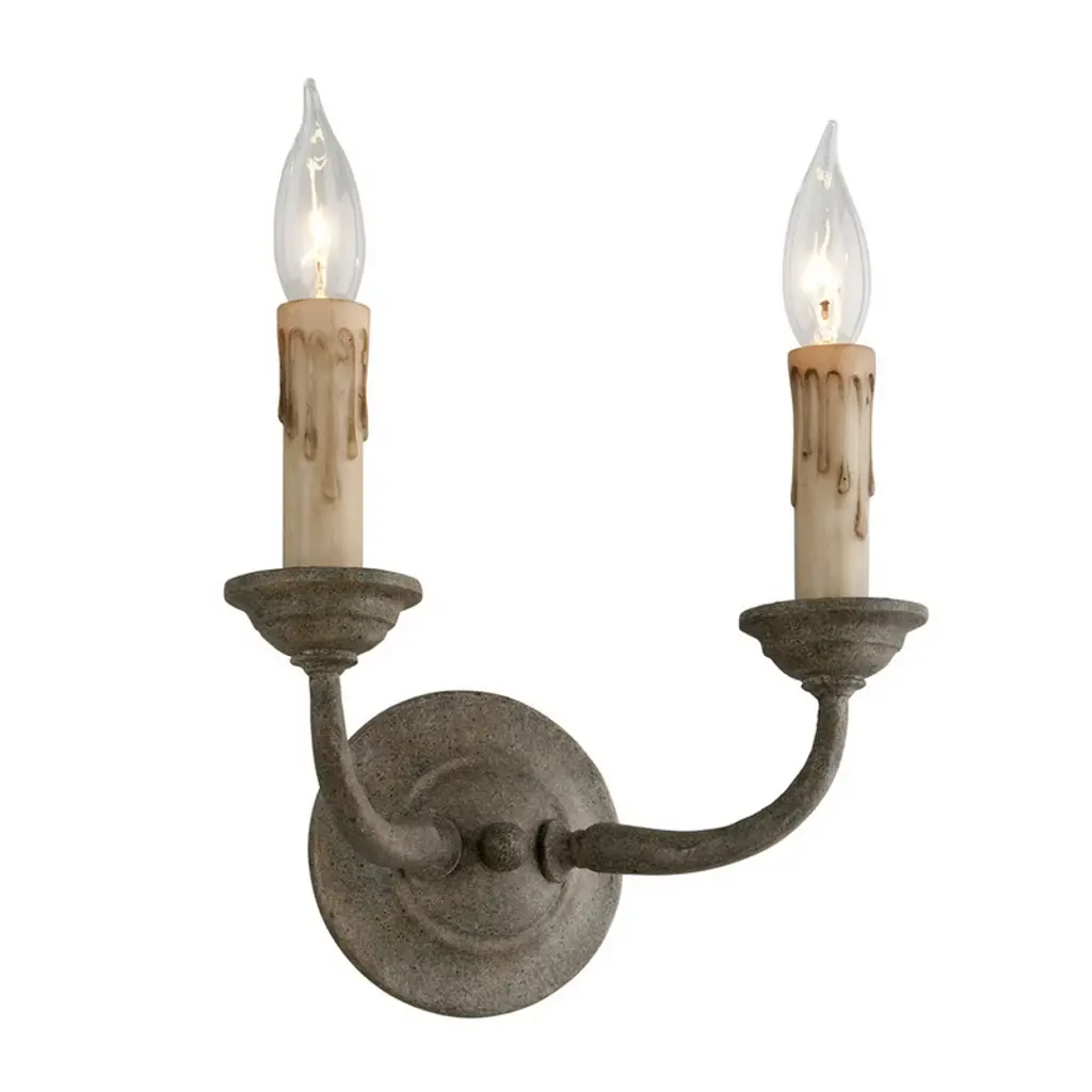Designed as a sophisticated illuminating accent for any room or corridor; this wall sconce features two Ivory faux candlelights with Brown Parchment Shades perched on bobeches which are embraced by curved arms. This elegant fixture offers decorative hardware in a warm Rustic Iron finish. Handcrafted by highly skilled artisans in the USA; the sconce is available in custom sizes; styles; colors and dimmable energy efficient lamping options such as LED. The Classic 14.5-inch wide sconce is UL and cUL listed for dry and damp locations however we do not recommend installing it in spaces that experience a large amount of moisture.