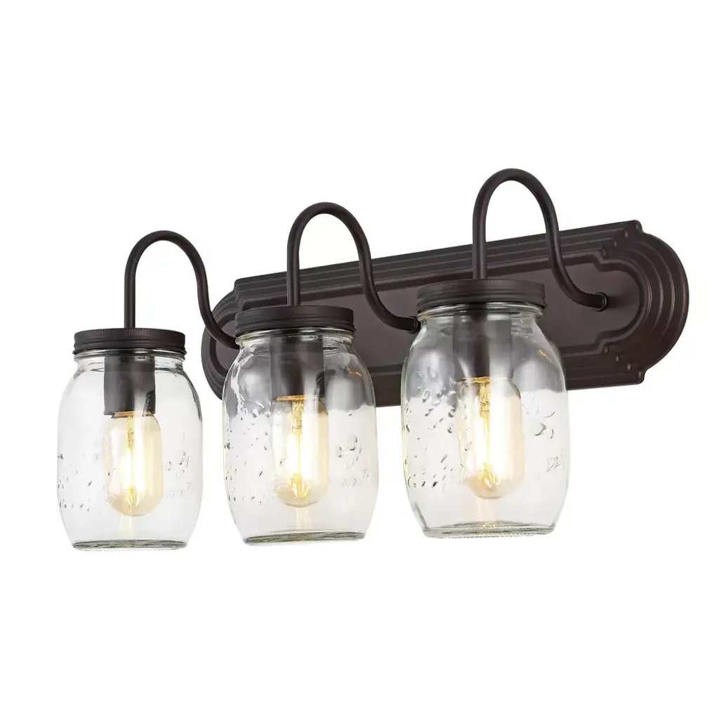 Replace outdated kitchen, living room or bedroom lighting with an on-trend Edison light fixture for an industrial farmhouse makeover. This 3-light fixture is perfect for a single sink in a small bathroom, or over a kitchen sink. Our light fixtures work with LED-compatible dimmers; professional installation is recommended. Eco-friendly 5W LED bulb included. Takes 3 bulbs and compatible with TYPE "A" 25W or CFL 9W or LED 5W. Color Temperature: 2700K. CRI: 80. Before cleaning any lamp shade or fixture, disconnect the power source. Wipe with a soft, dry cloth. Avoid the use of chemicals and household cleaners as they may damage the finish.