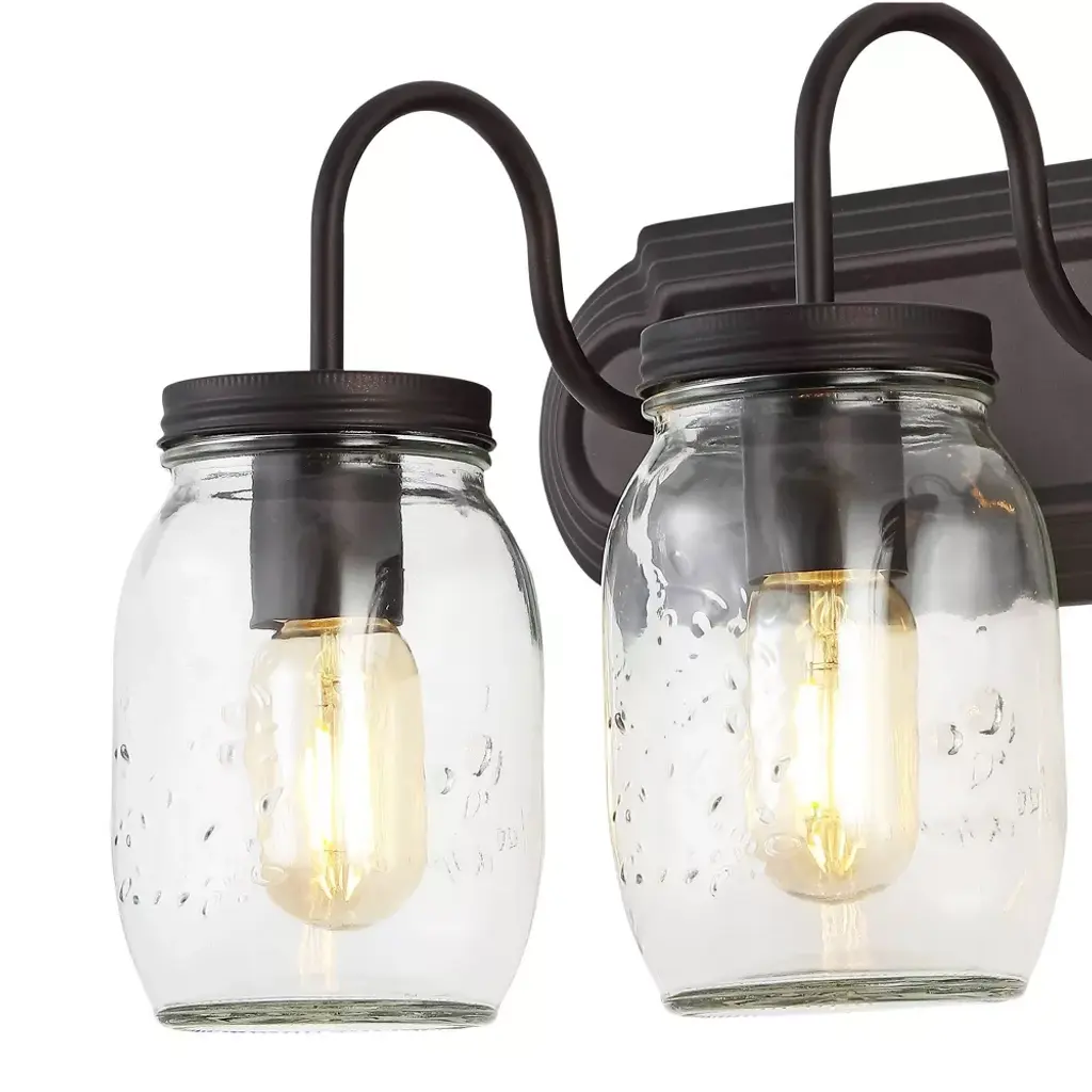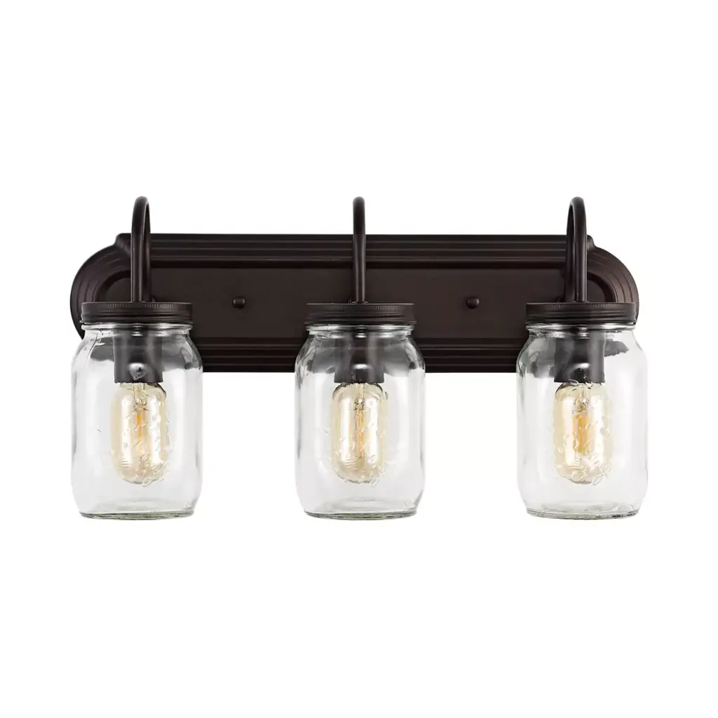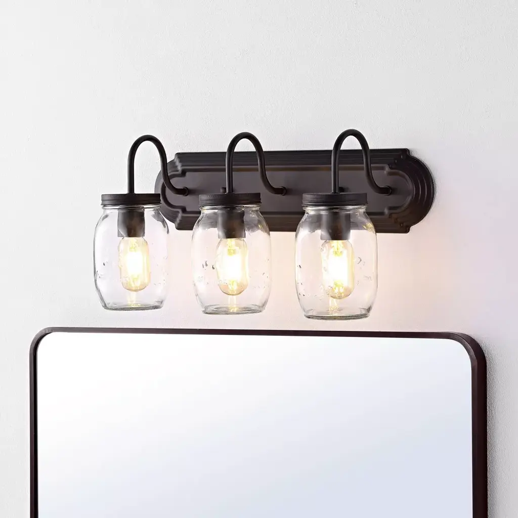19.3" Led 3-light Gaines Industrial Iron Mason Jar Wall Sconce Oil Rubbed Bronze/clear - Jonathan Y: Ul Listed, Eco-friendly