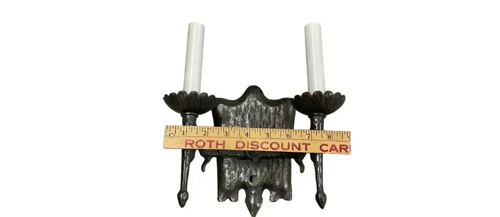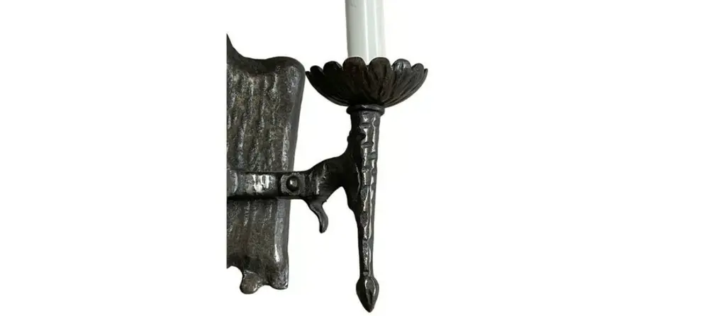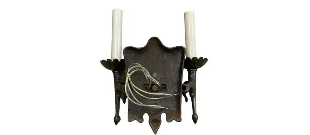 1920 Tudor Arts And Crafts Double Sconce Blackened Cast Iron By Levolite