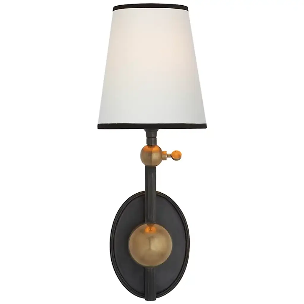 A stunning and very rare pair of authentic art deco 1933 worlds fair Saturn sconces. Black shades come with the sconces and add beautiful flair.