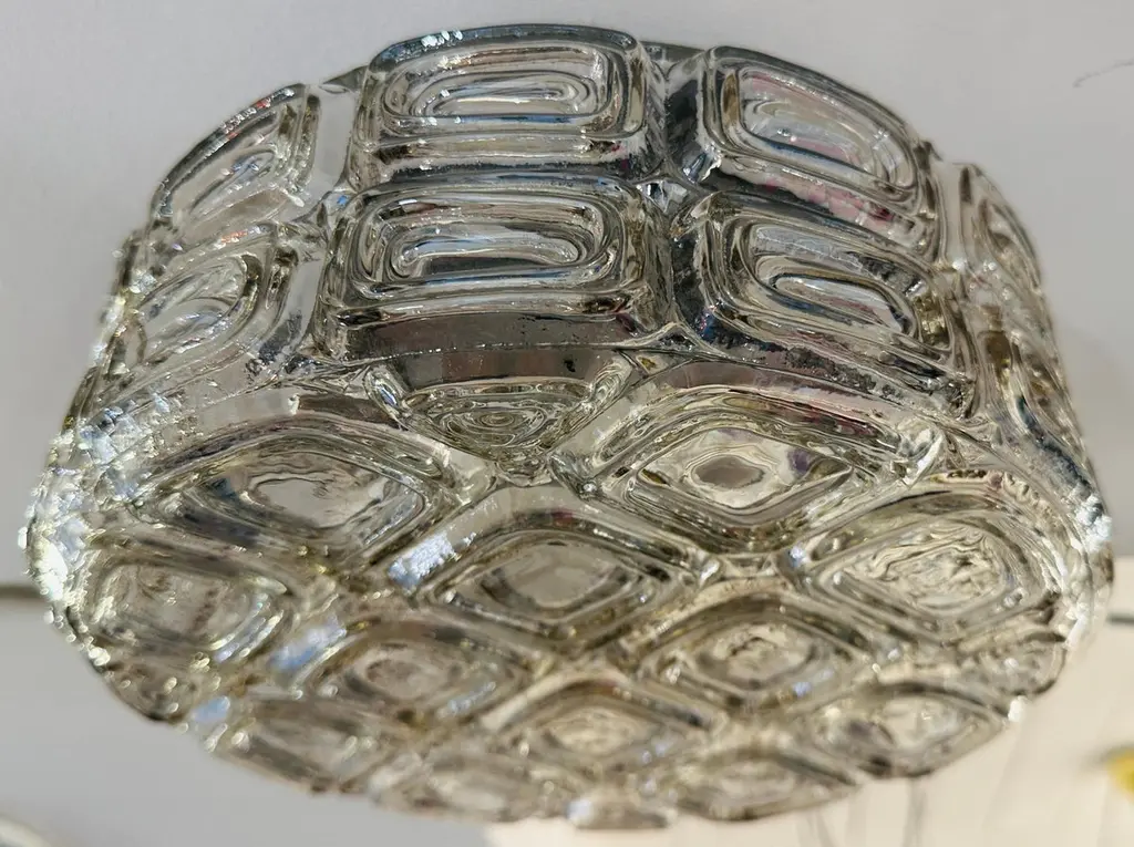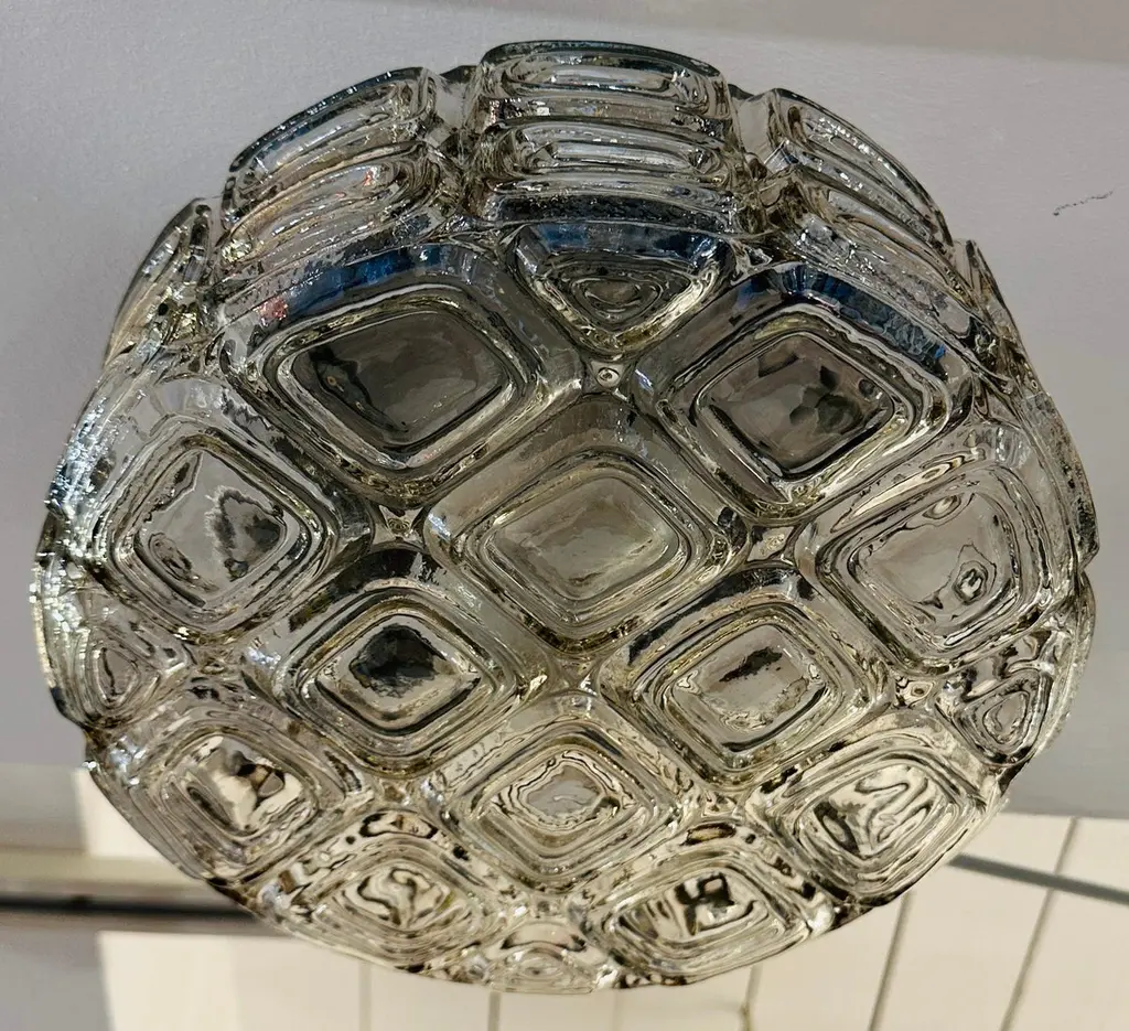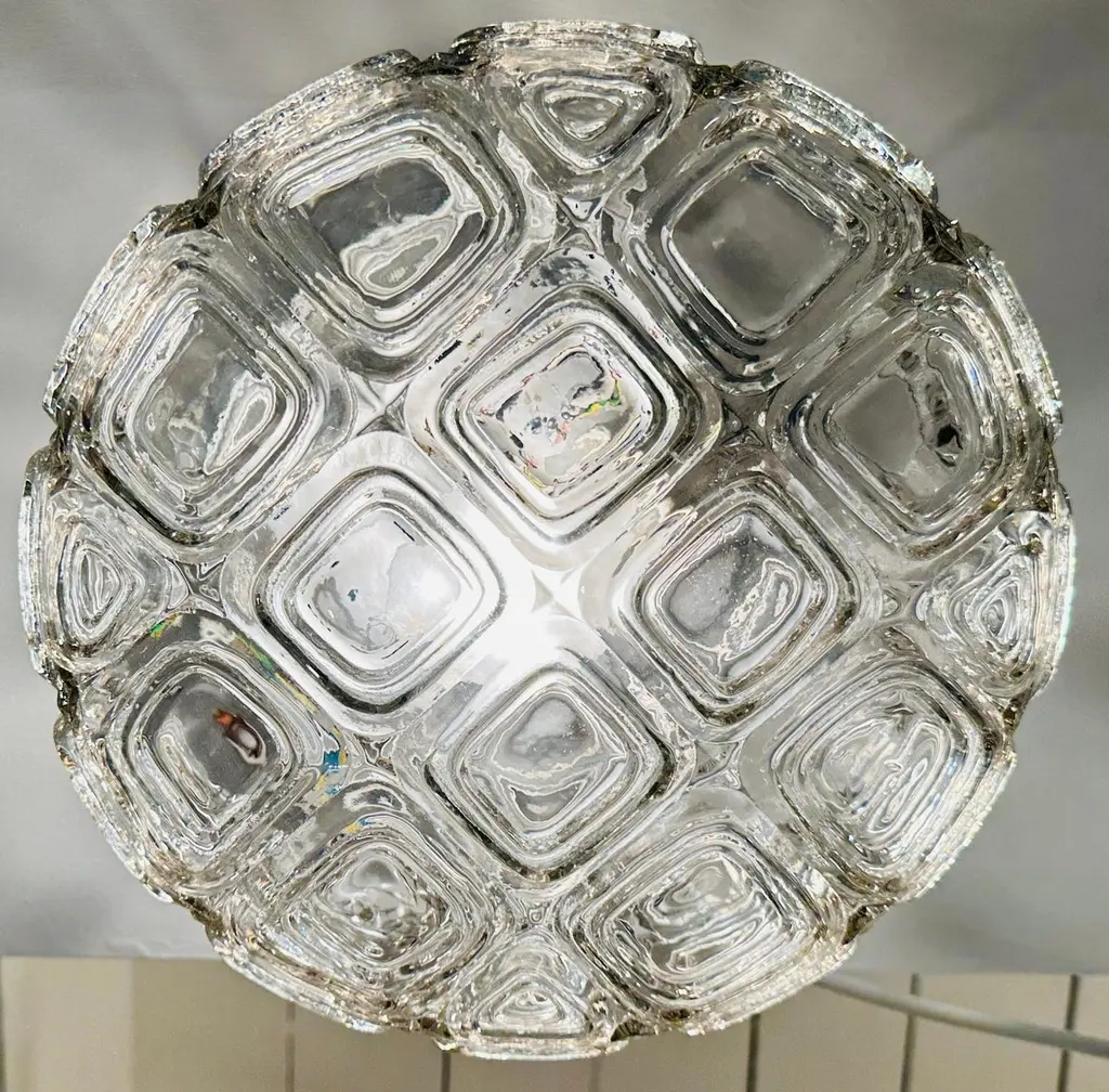 1960s Vintage German Wila Geometric Round Glass Flush Mount Or Wall Light